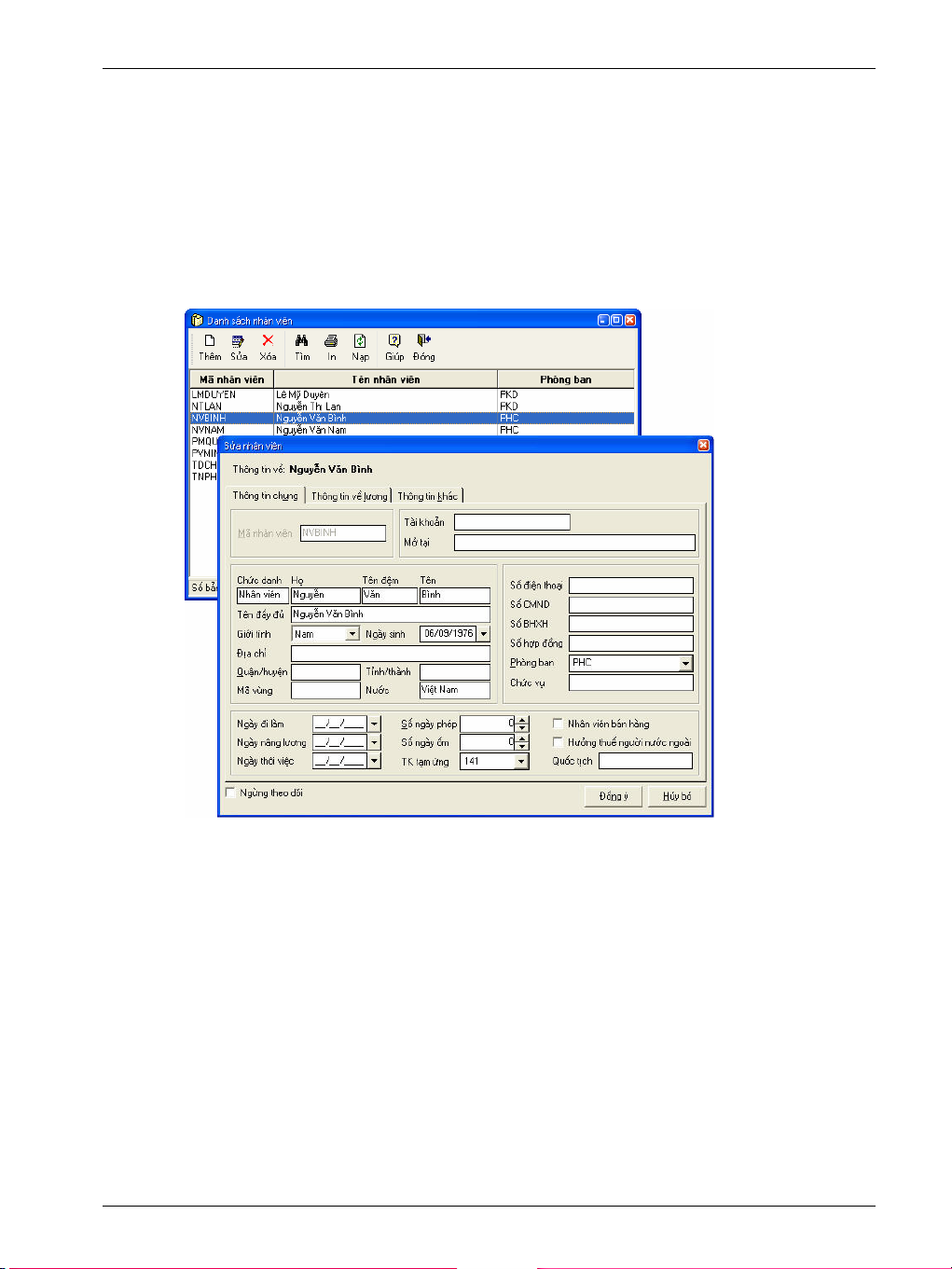 báo một nhân viên, người sử dụng cần nhập các thông tin như: mã nhân