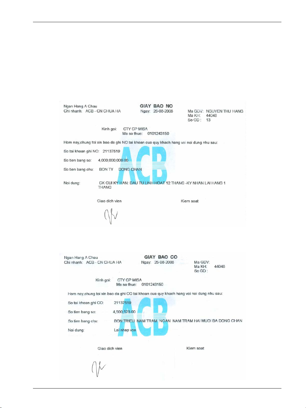 báo Có; Giấy báo Nợ; Bản sao kê của ngân hàng; Ủy nhiệm thu; Ủy nhiệm