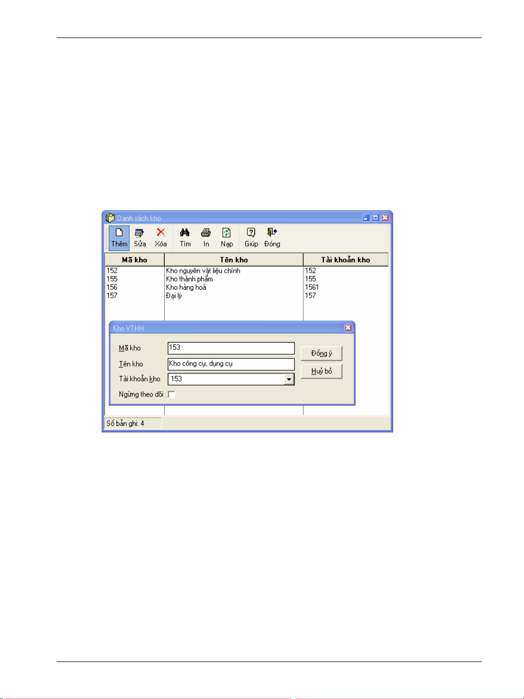 thiết lập một kho mới, người sử dụng cần phải nhập đầy đủ các thông tin về: