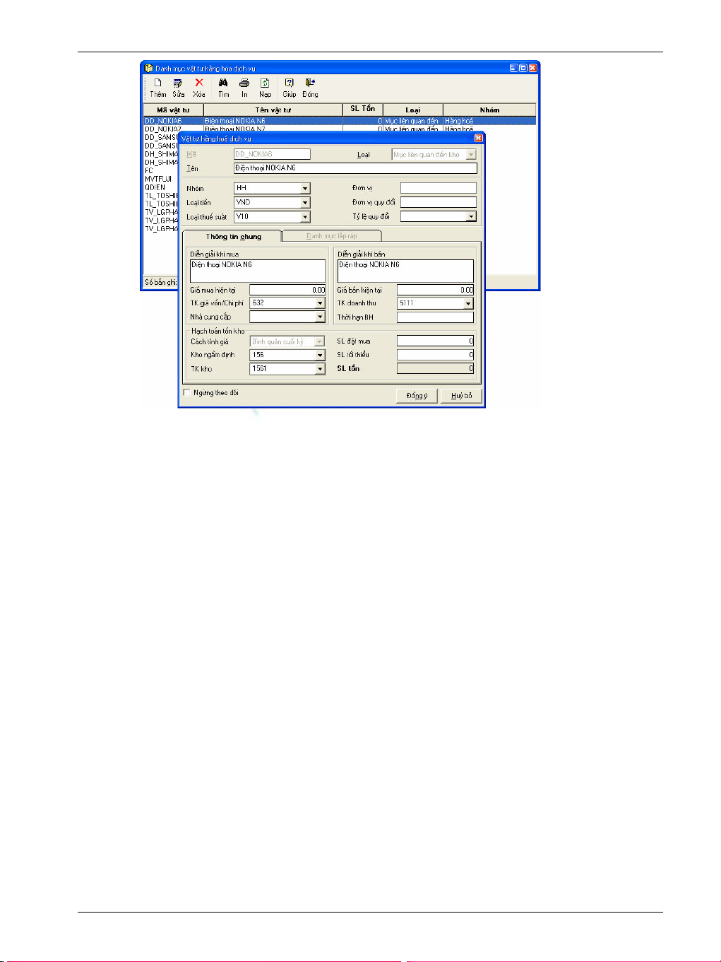 dụng cần nhập các thông tin về: mã vật tư, tên vật tư, nhóm, đơn vị tính, kho