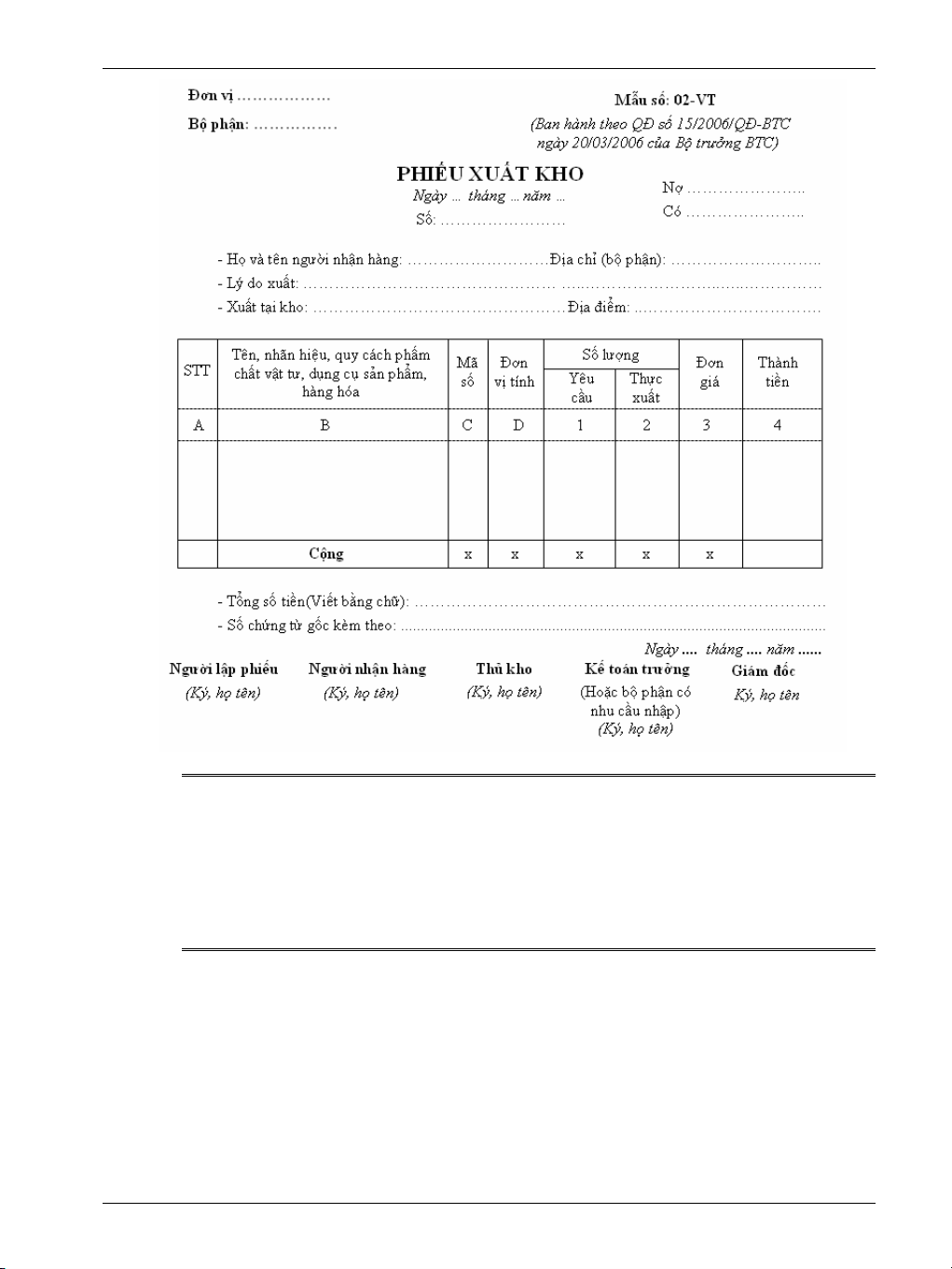 người giao hàng (hoặc người nhận hàng), kho nhập (hoặc xuất), tên vật tư,