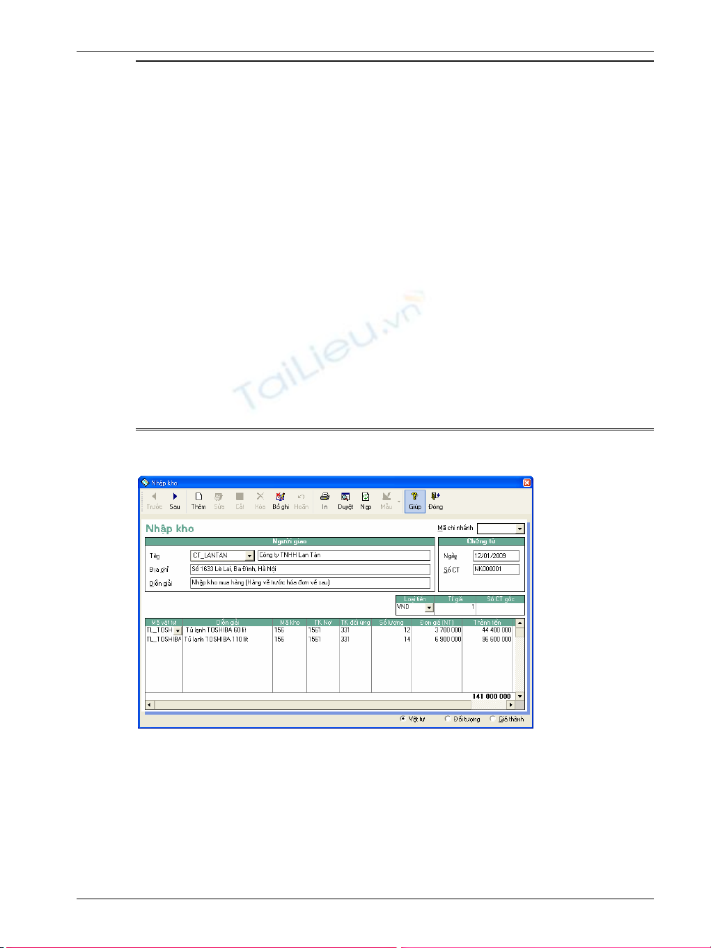 Trên các phiếu nhập, xuất kho, người sử dụng cần nhập các thông tin như: