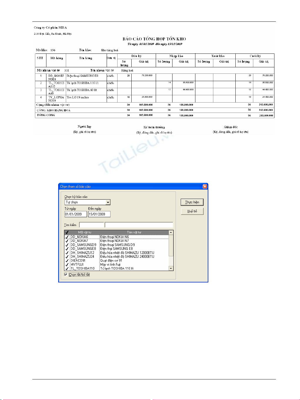 xem các báo cáo, người sử dụng phải chọn các tham số cần thiết.
