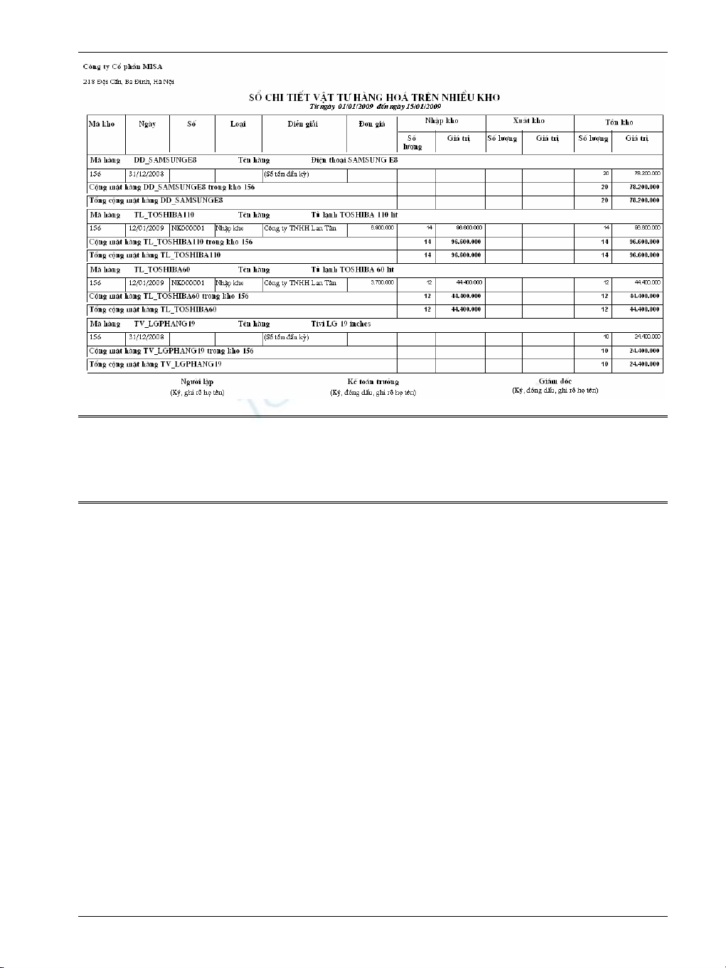 • In Báo cáo tổng hợp tồn kho; Bảng tổng hợp chi tiết vật liệu, dụng cụ,