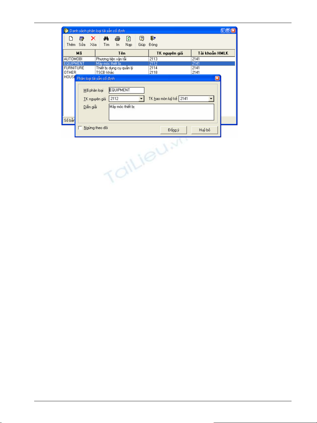 Danh mục loại TSCĐ dùng để theo dõi các tài sản cố định theo từng loại