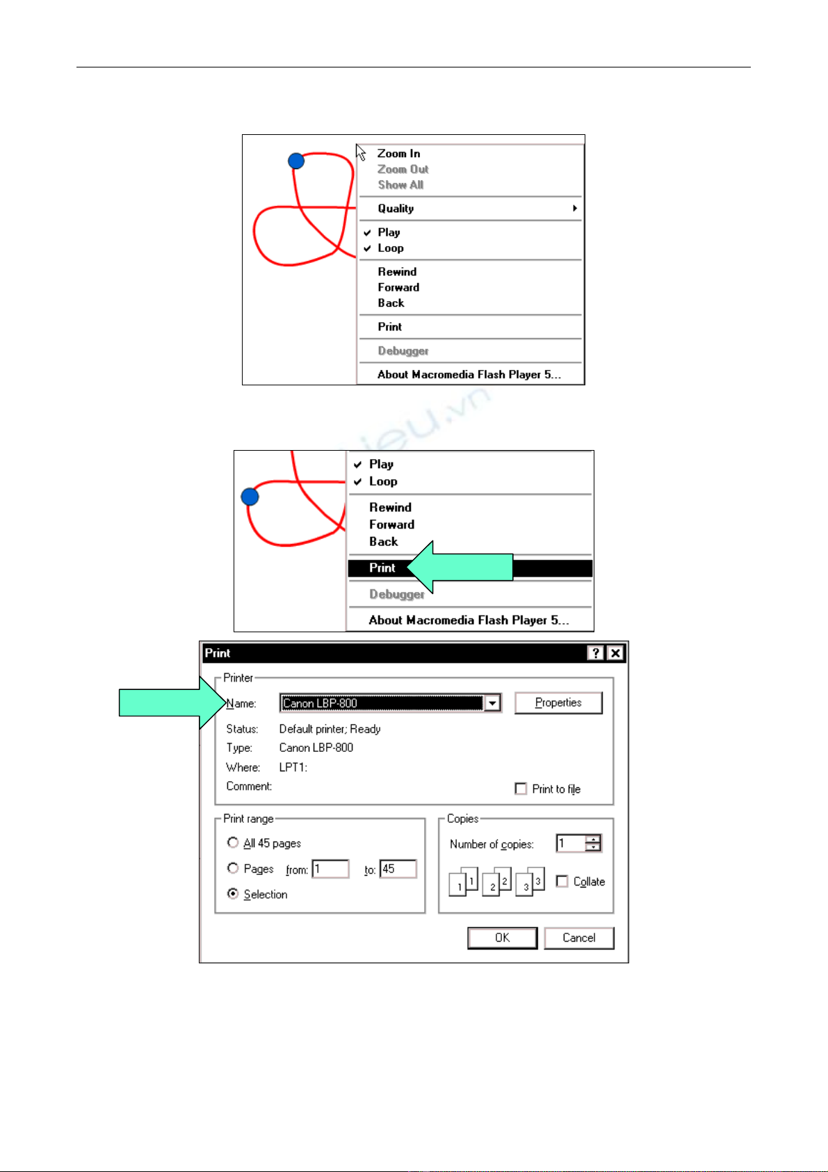 4. Choïn Print töø trình ñôn context cuûa Flash Player ñeå hieån thò hoäp thoaïi Print.
