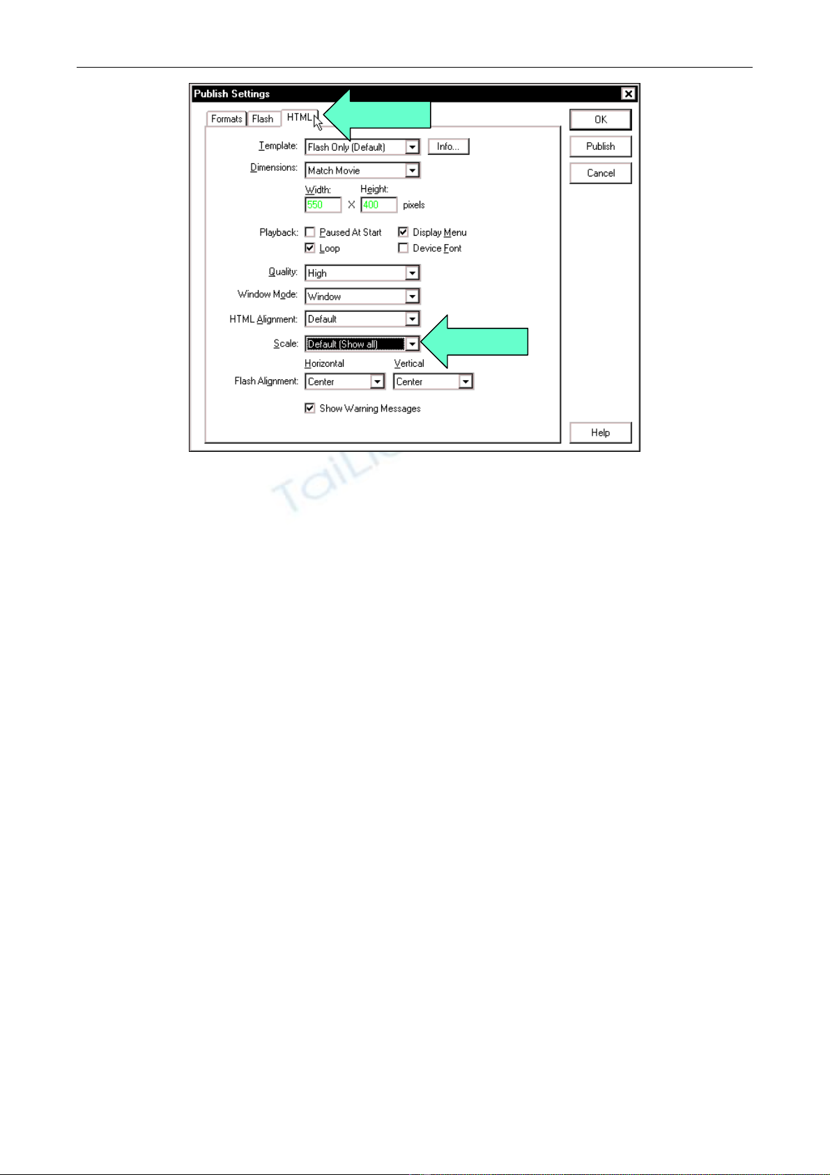 trong hoäp thoaïi Publish Settings.