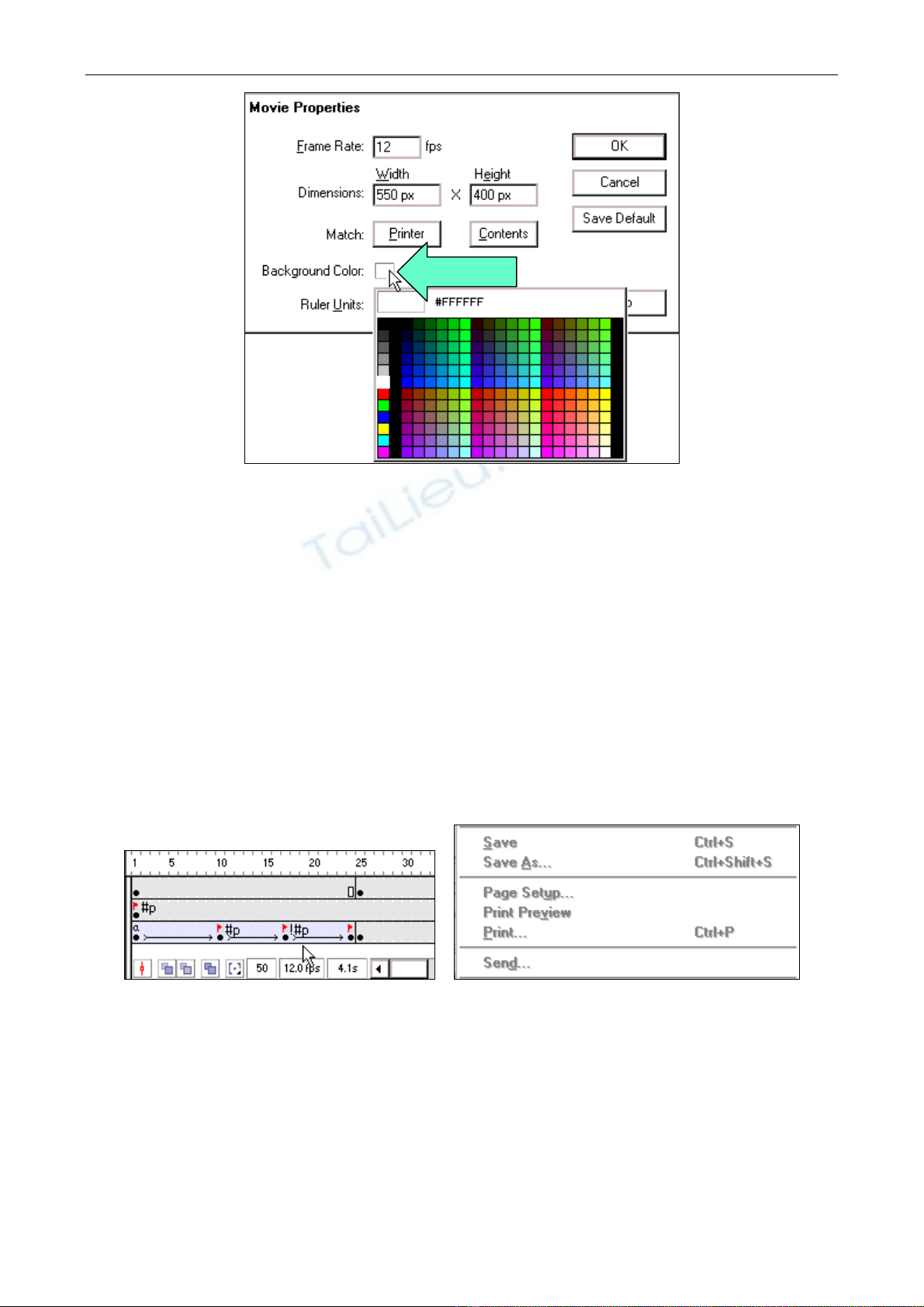 2. Choïn ñoái töôïng vaø choïn leänh Modify > Movie. Choïn moät maøu neàn in ra ngoaøi taïi hoäp