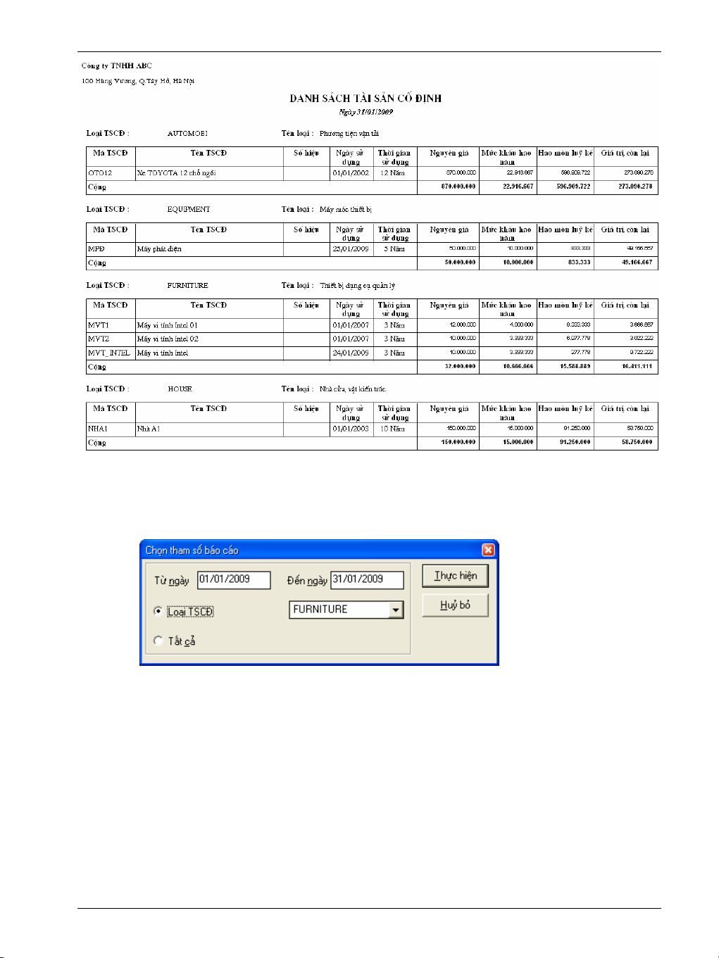 động xử lý và đưa ra các báo cáo về tài sản cố định. Khi xem các báo cáo,