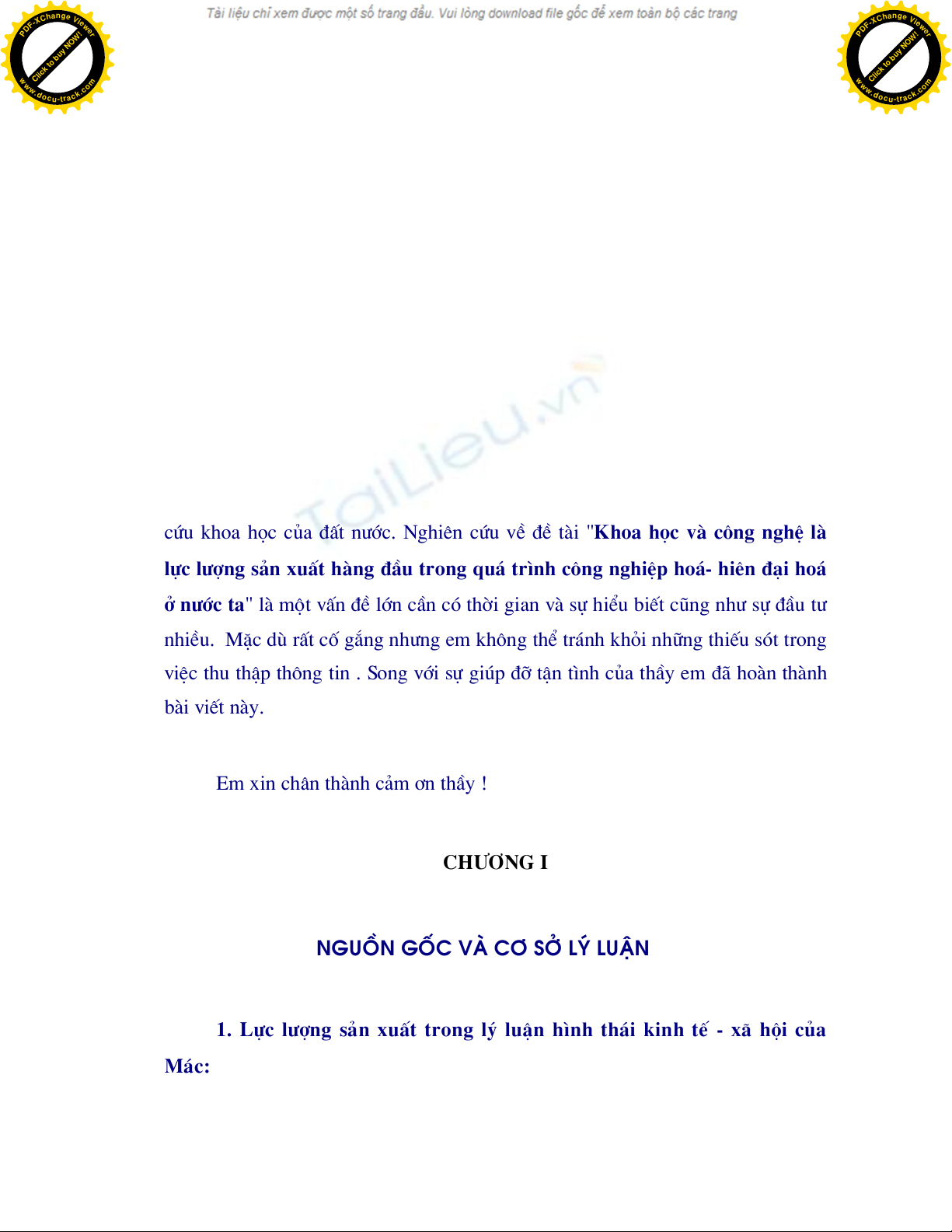 häc vµ c«ng nghÖ hiÖn ®¹i lµ ®Æc trng cho lùc lîng s¶n xuÊt hiÖn ®¹i. CacM¸c