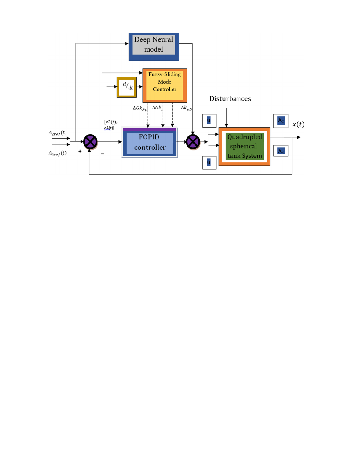 Integral Derivative (FDN-SM-FOPID) controller system for controlling liquid in quadruple spherical tank systems.