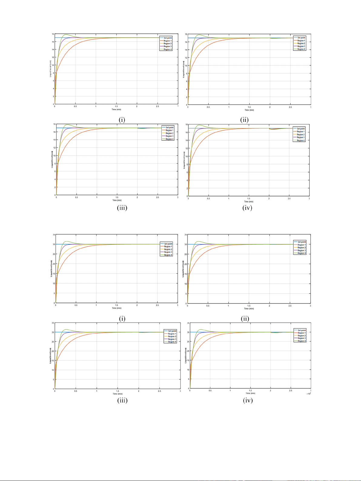 Fig. 4. Responses of four regions at SP=30, t =2 min (i) no disturbance; with disturbance at (ii) 5 lph (iii) 10 lph (iv) 15 lph.