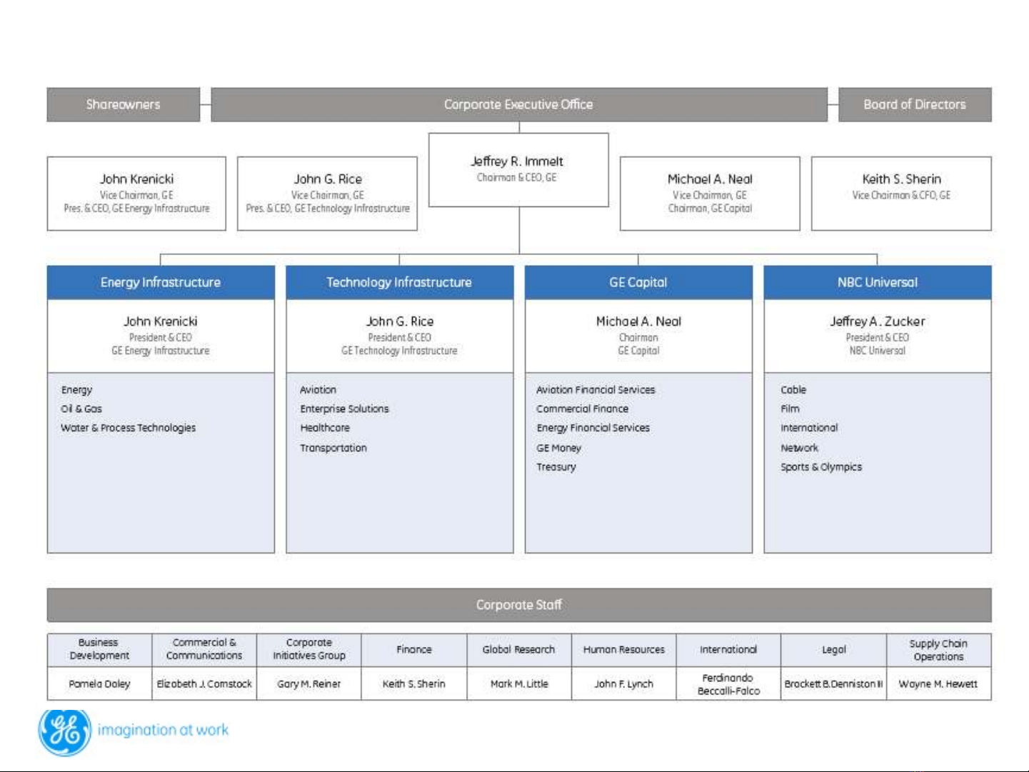 Gồm: cty thiết bị năng lượng GE, cty thiết bị kỹ thuật GE, cty tài chính GE,