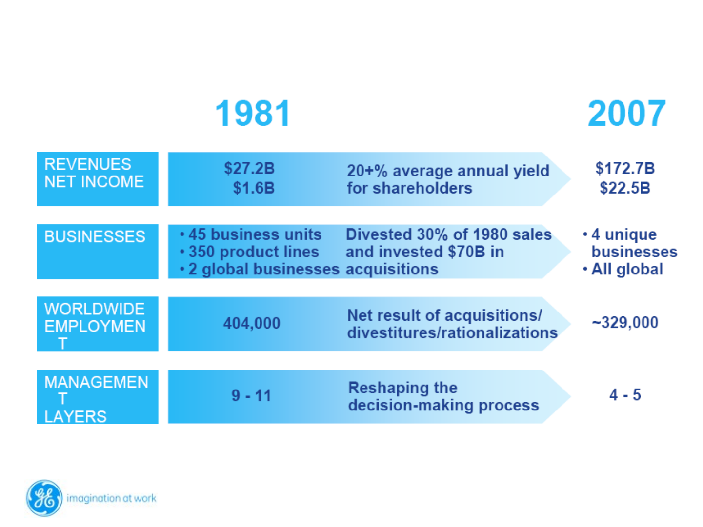 - Jack Welch là CEO 1981-2001 v i nhi u c i cách manh m :ớ ề ả ẽ