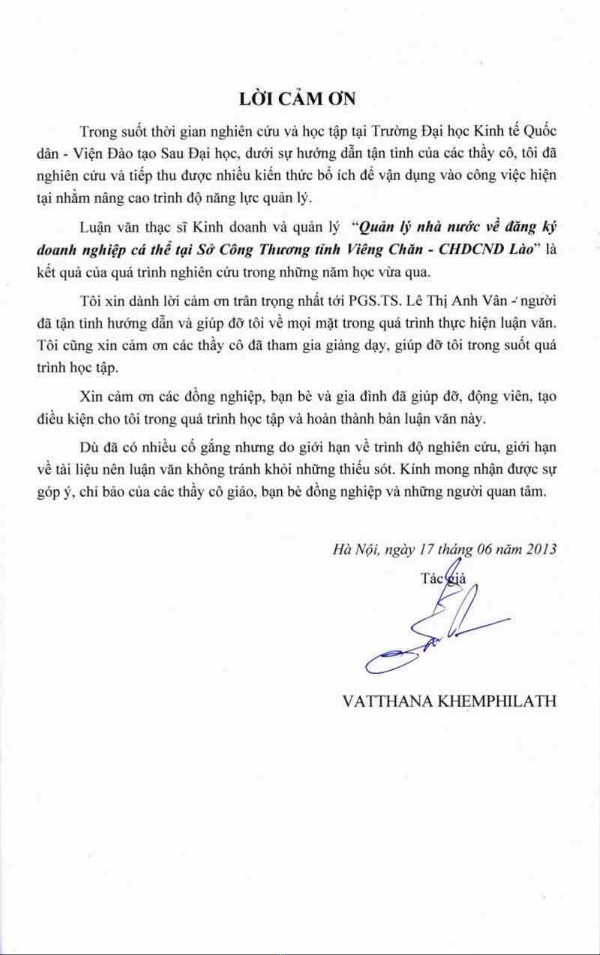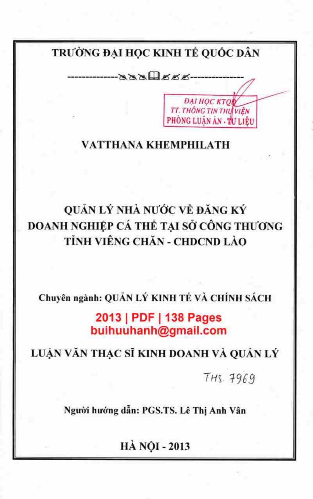 Luận văn Thạc sĩ Kinh doanh và quản lý 'Quản lý nhà nước về đăng ký doanh nghiệp cá thể tại Sở Công thương tỉnh Viêng Chăn - CHDCND Lào' là một nghiên cứu khoa học về việc quản lý nhà nước về đăng ký doanh nghiệp cá thể tại Sở Công Thương tỉnh Viêng Chăn, Lào. Nghiên cứu này đánh giá hiệu quả của các chính sách và quy định hiện hành về đăng ký doanh nghiệp cá thể tại Lào, và cung cấp giải pháp hoàn thiện để đáp ứng nhu cầu phát triển kinh tế - xã hội của tỉnh Viêng Chăn.