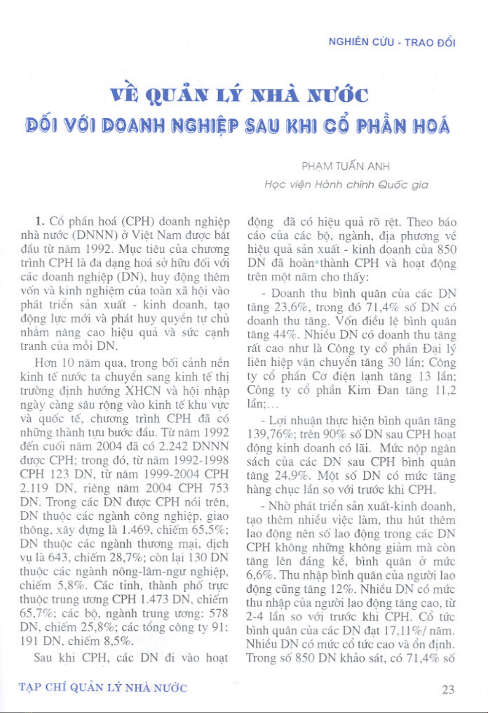 Về quản lý nhà nước đối với doanh nghiệp sau khi cổ phần hóa - Phạm Tuấn Anh
