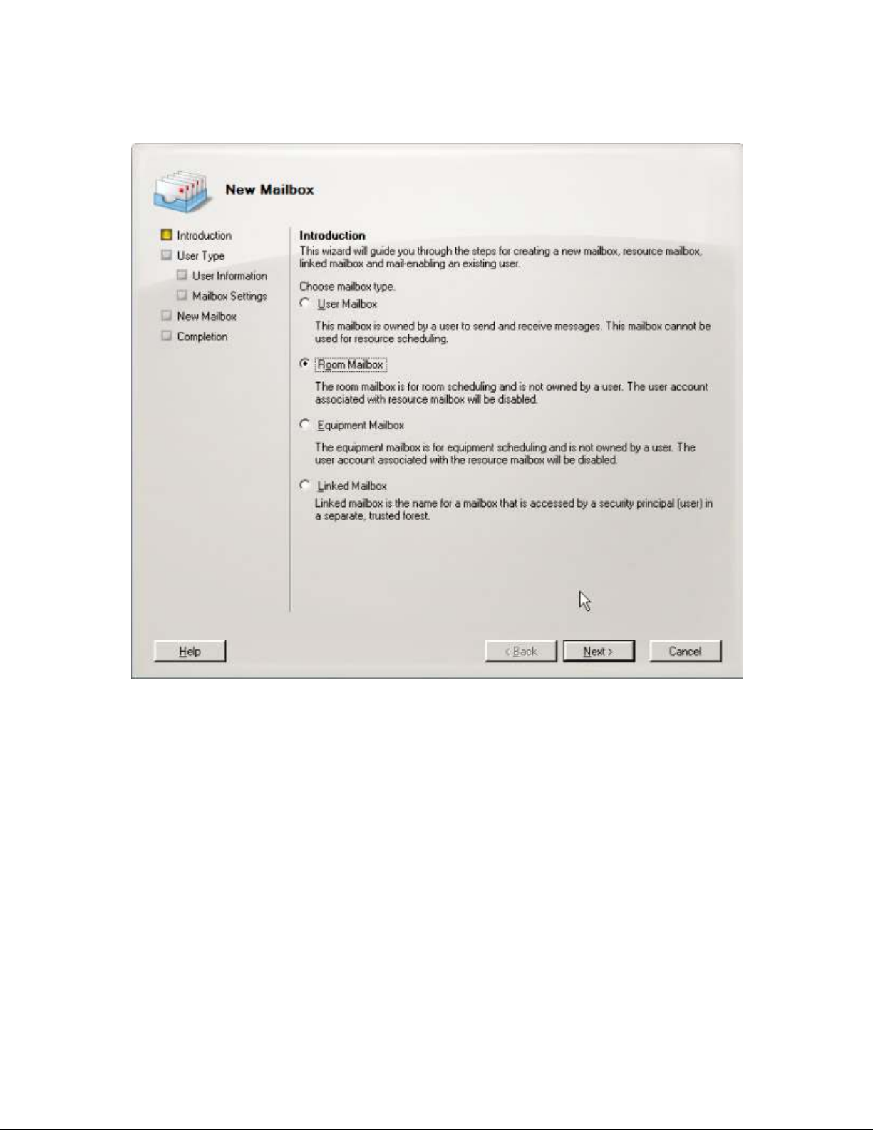 Trong cửa sổ Introduction, bạn chọn Room Mailbox sau đó kích Next để tiếp