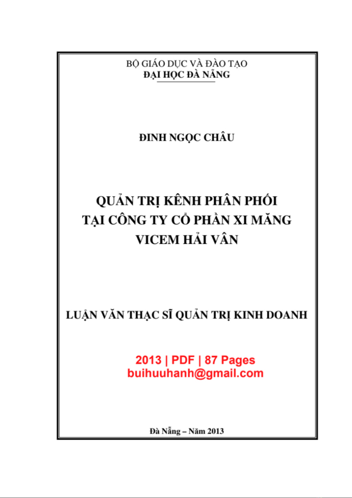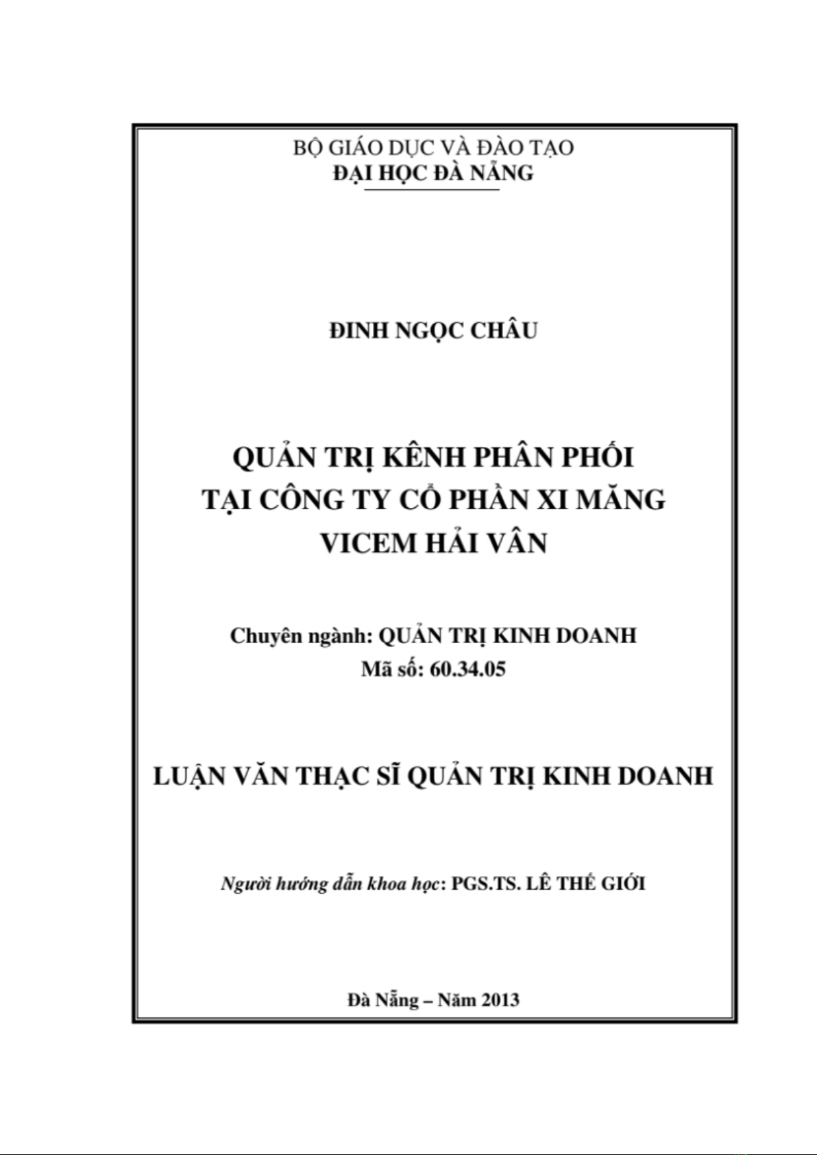 Luận văn "Quản trị kênh phân phối tại Công ty cổ phần Xi măng Vicem Hải Vân" trình bày cơ sở lý luận về thiết kế và quản trị kênh phân phối; thực trạng quản trị kênh phân phối tại Công ty cổ phần xi măng Vicem Hải Vân; hoàn thiện quản trị kênh phân phối tại Công ty cổ phần xi măng Vicem Hải Vân.