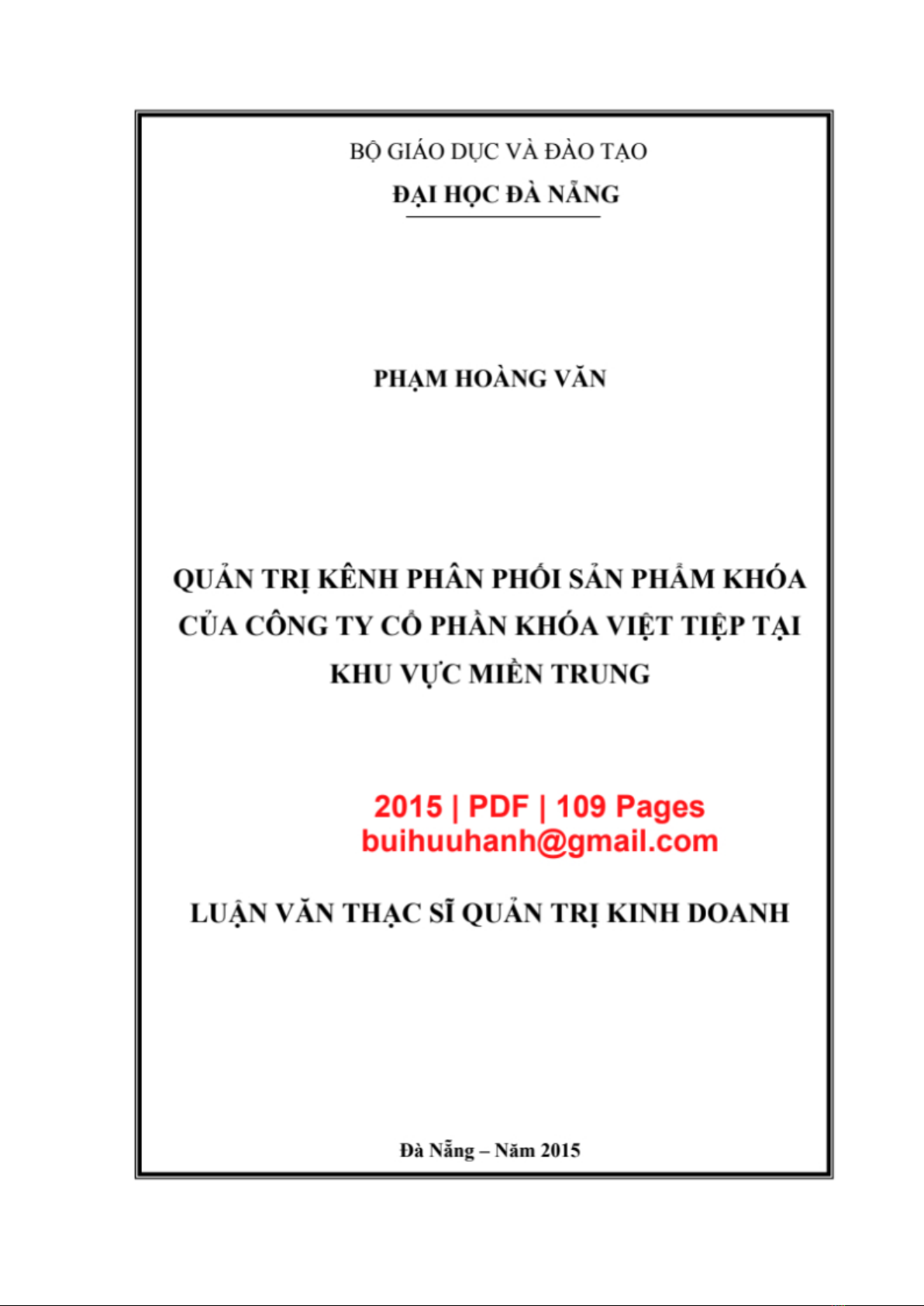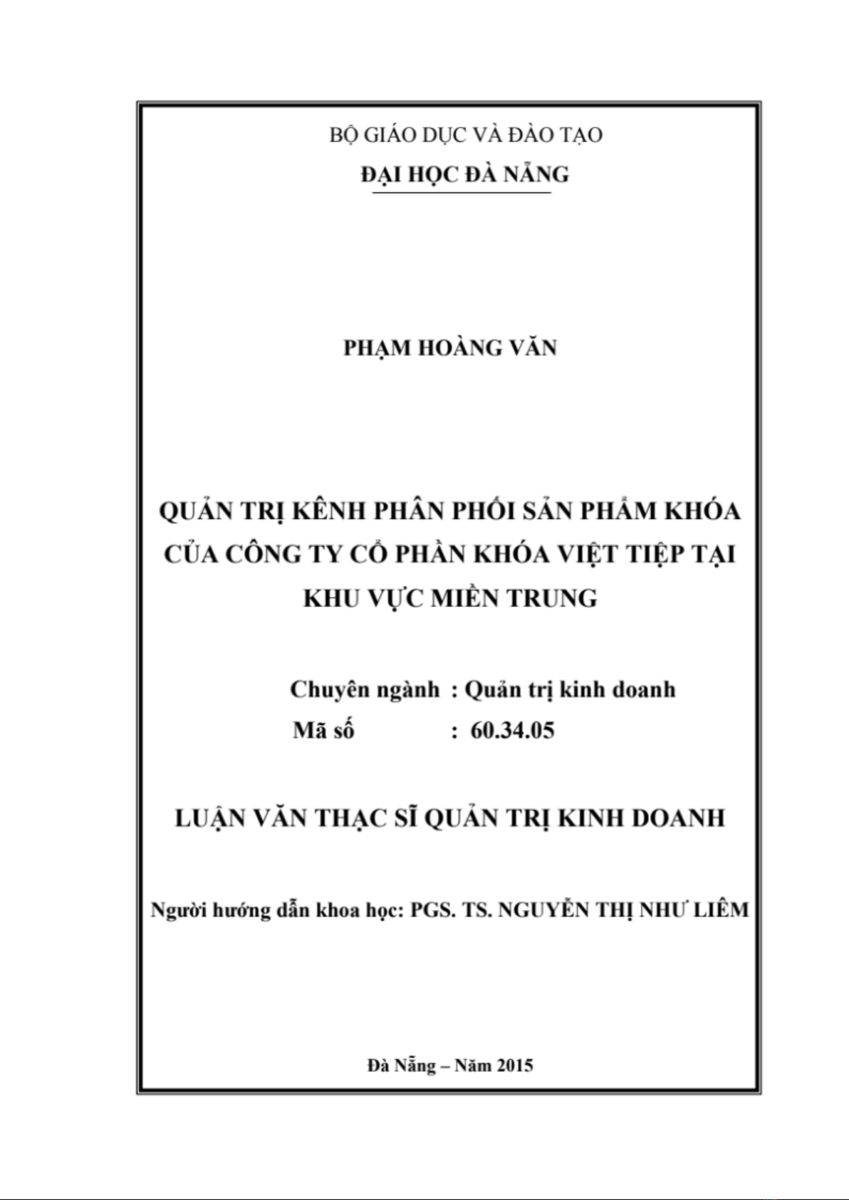 Luận văn Thạc sĩ Quản trị kinh doanh: Quản trị kênh phân phối sản phẩm khóa của Công ty cổ phần Khóa Việt Tiệp tại khu vực Miền Trung