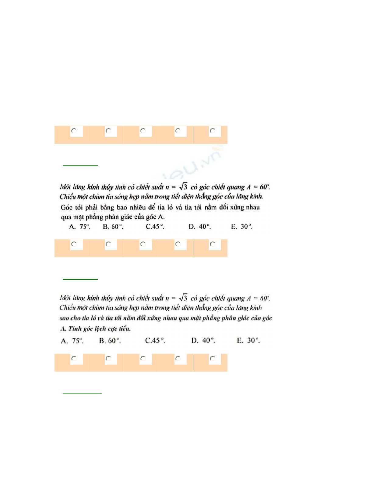 thẳng góc của lăng kính. Tính góc lệch D của tia ló so với tia tới.A.