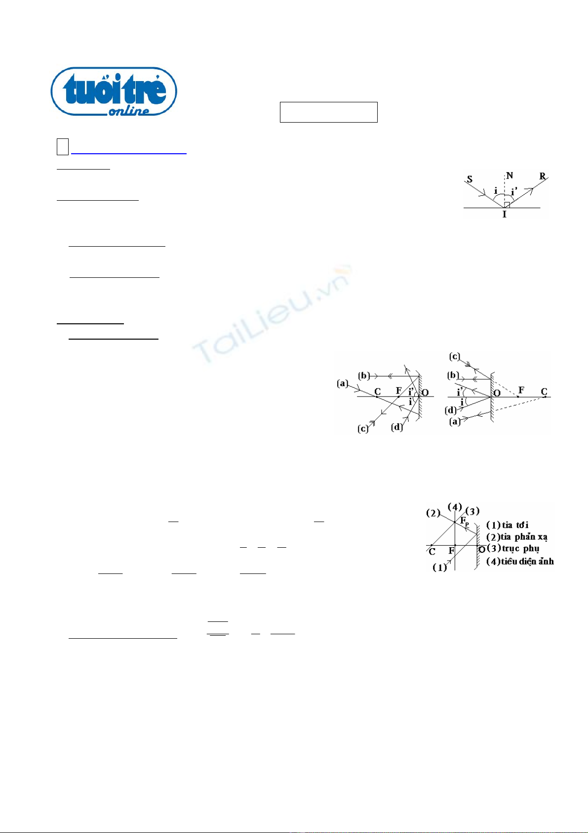 d) Tia tôùi qua ñænh O cuûa göông caàu , cho tia phaûn xaï ñoái xöùng vôùi tia tôùi qua truïc chính ( i’= i )