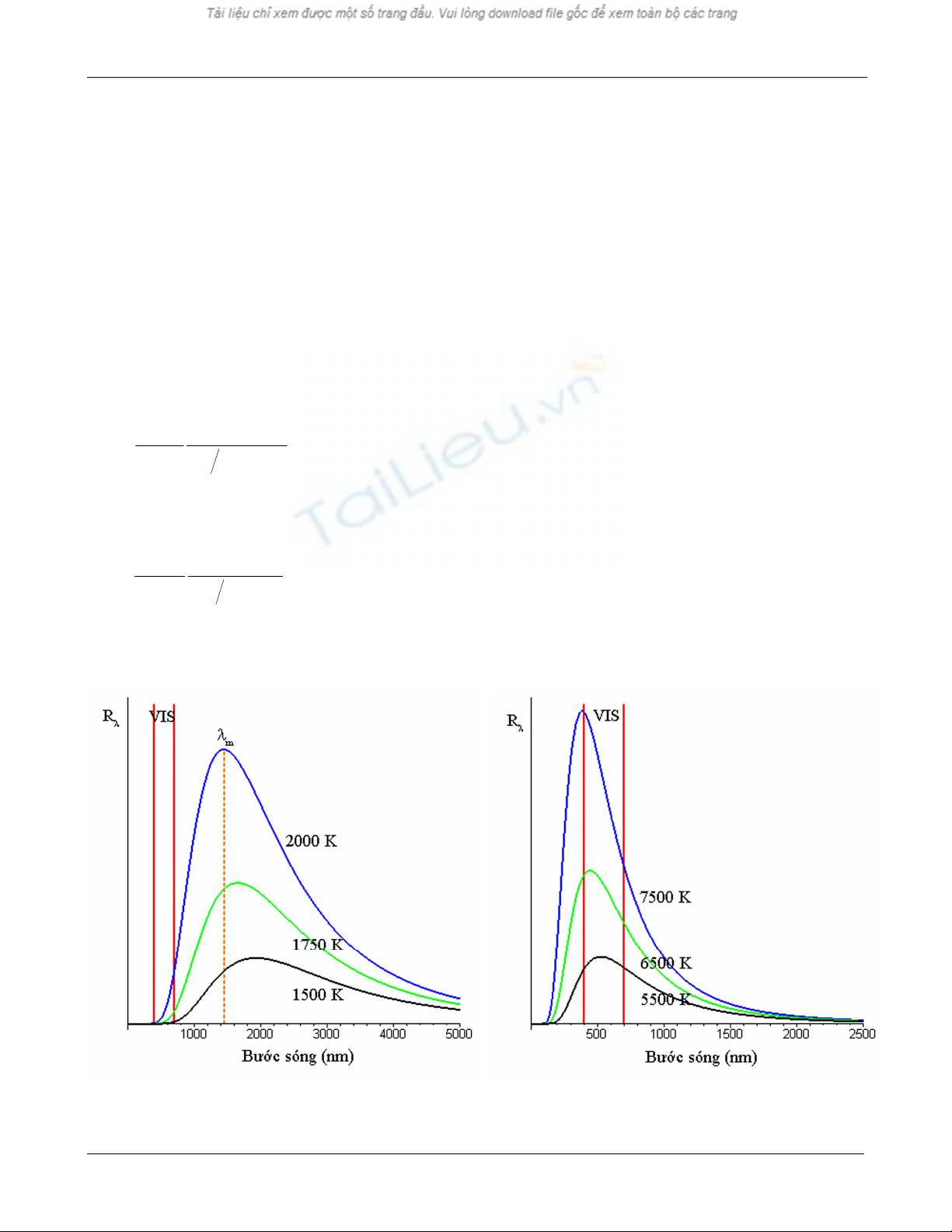 ðồ thị của Rλ ñược vẽ trên Hình 1 cho một số nhiệt ñộ khác nhau của vật. Chúng ta có một số nhận xét: