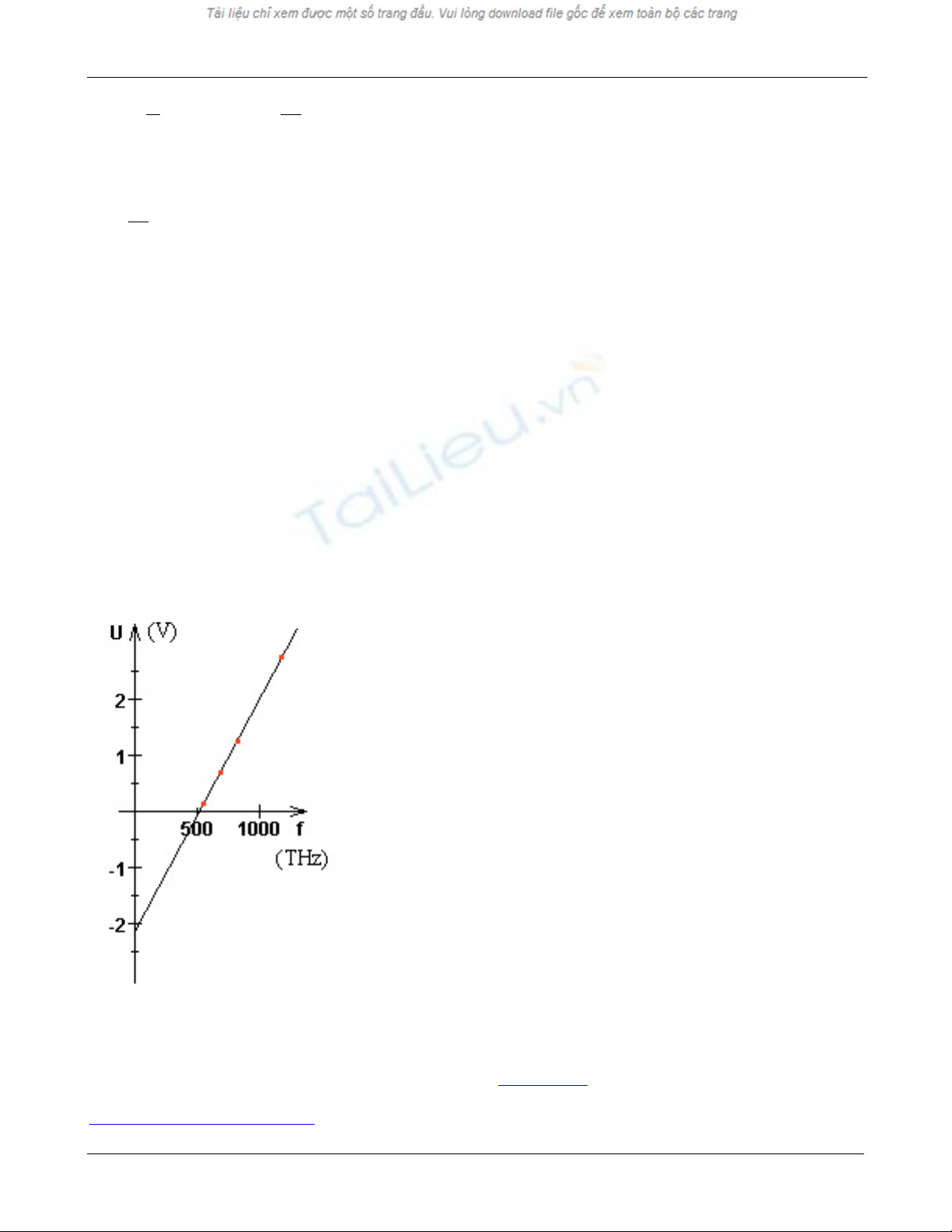 Hình 3. Từ ñồ thị của hiệu thế U theo tần số ν ta có thể xác ñịnh hằng số Planck (bằng ñộ dốc) và công thoát