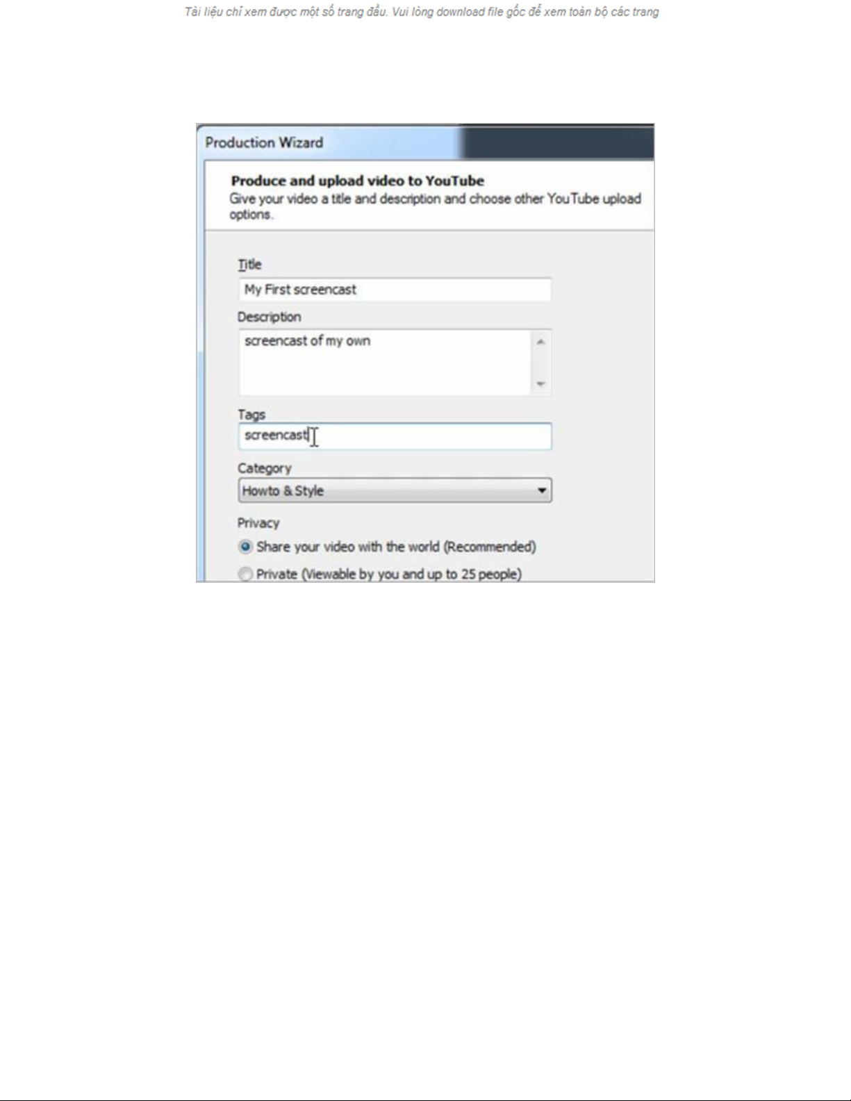 trang thiết lập thông tin cho video. Nhấp Finish để