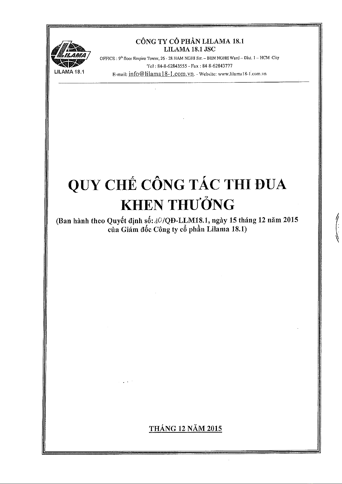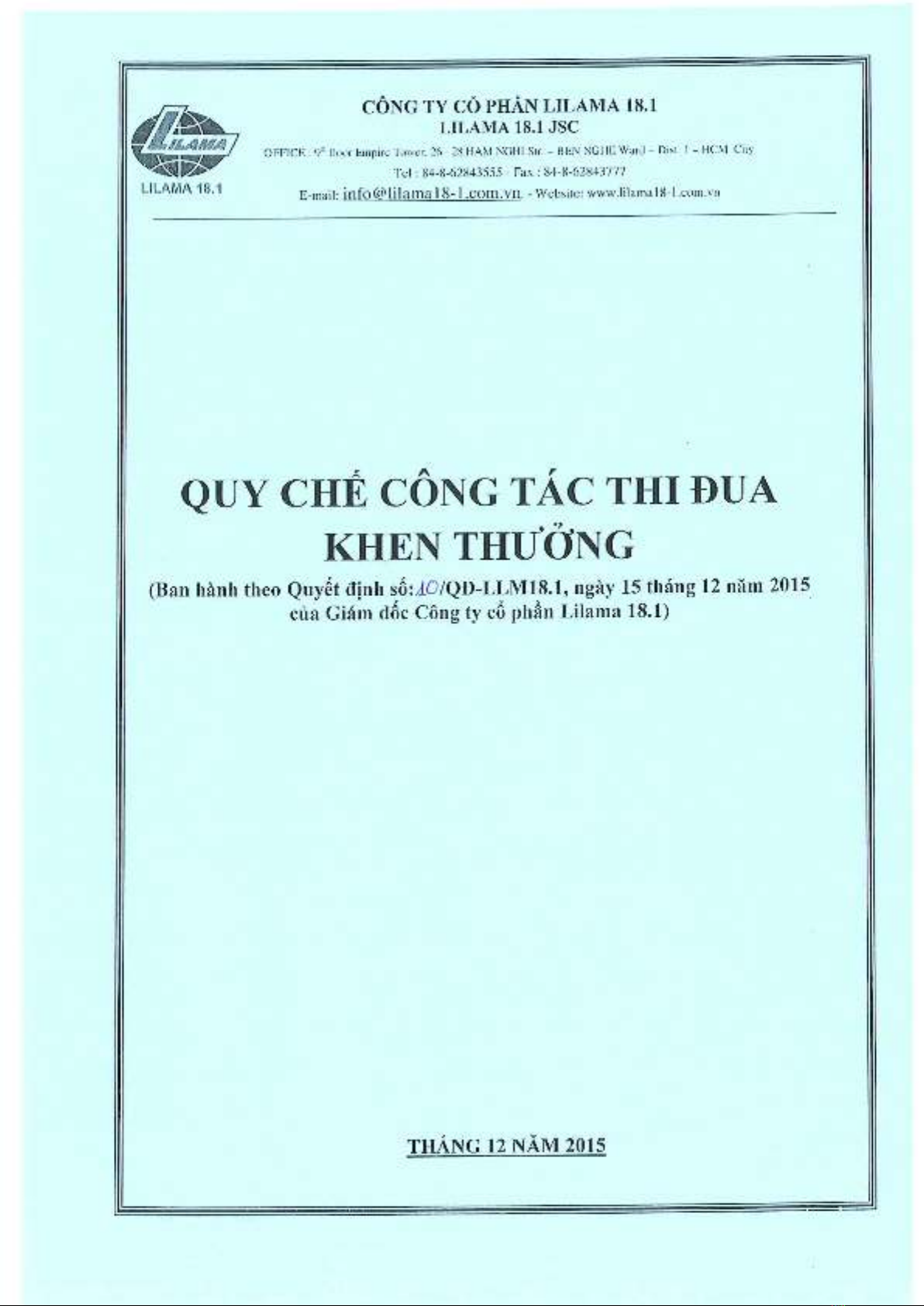 Quy chế công tác thi đua khen thưởng - Công ty Cổ phần Lilama 18.1