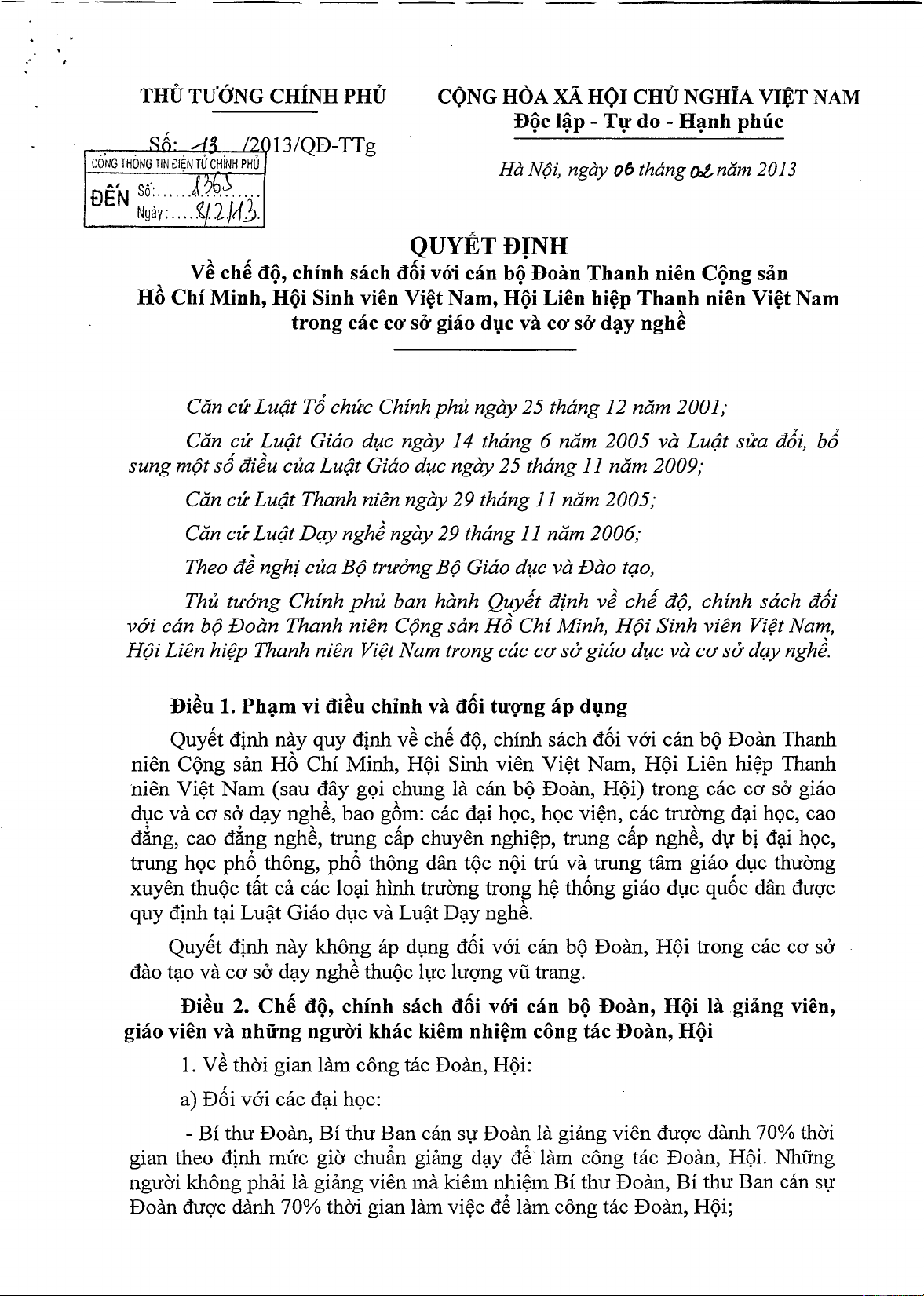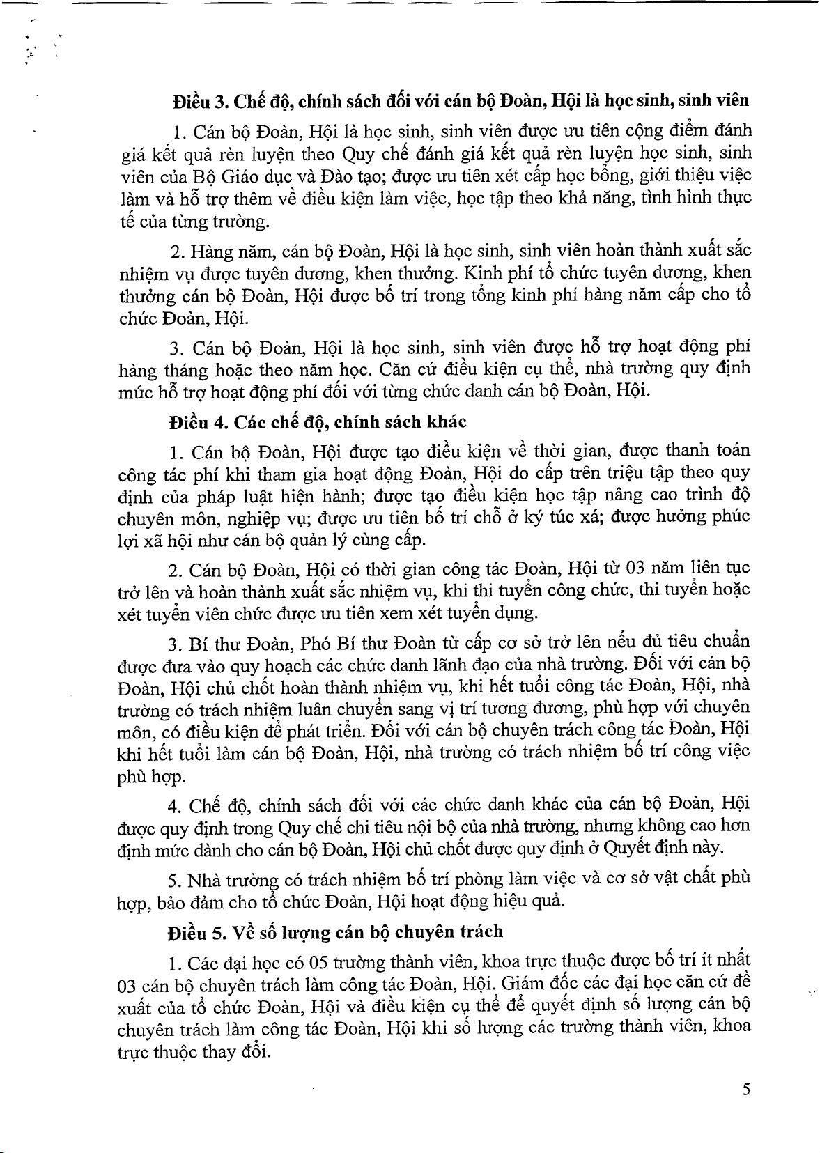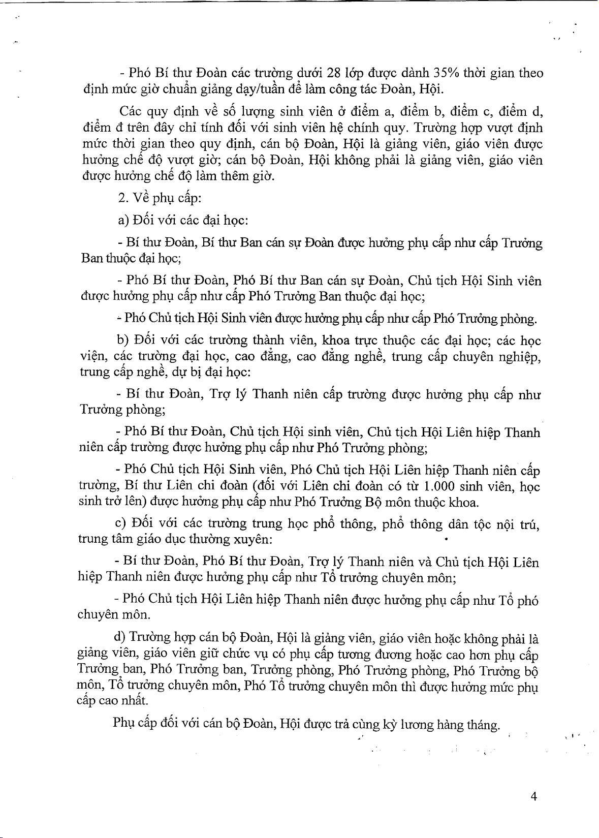 Quy chế mới chế độ chính sách cho cán bộ đoàn hội các cơ sở giáo dục và dạy nghề áp dụng từ 26-03-2013