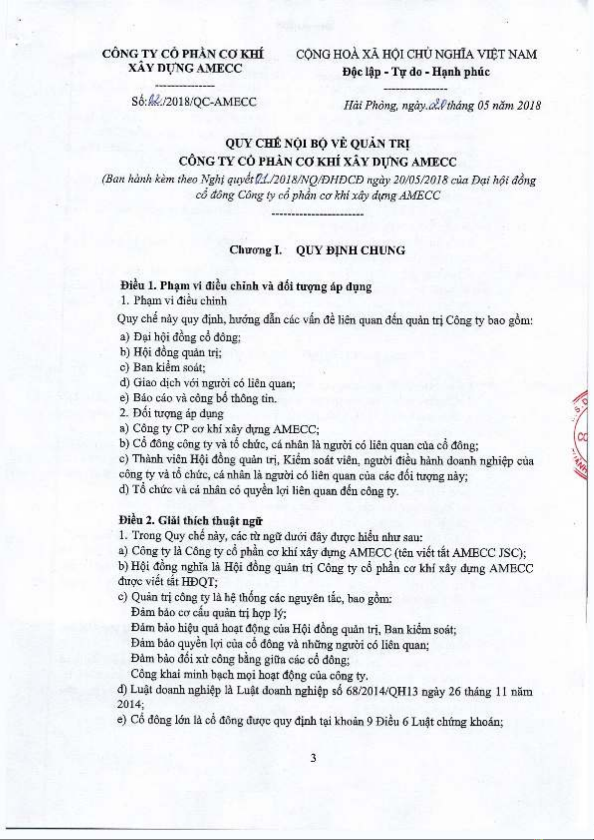 Quy chế nội bộ về quản trị công ty - Công ty Cổ phần Cơ khí Xây dựng AMECC