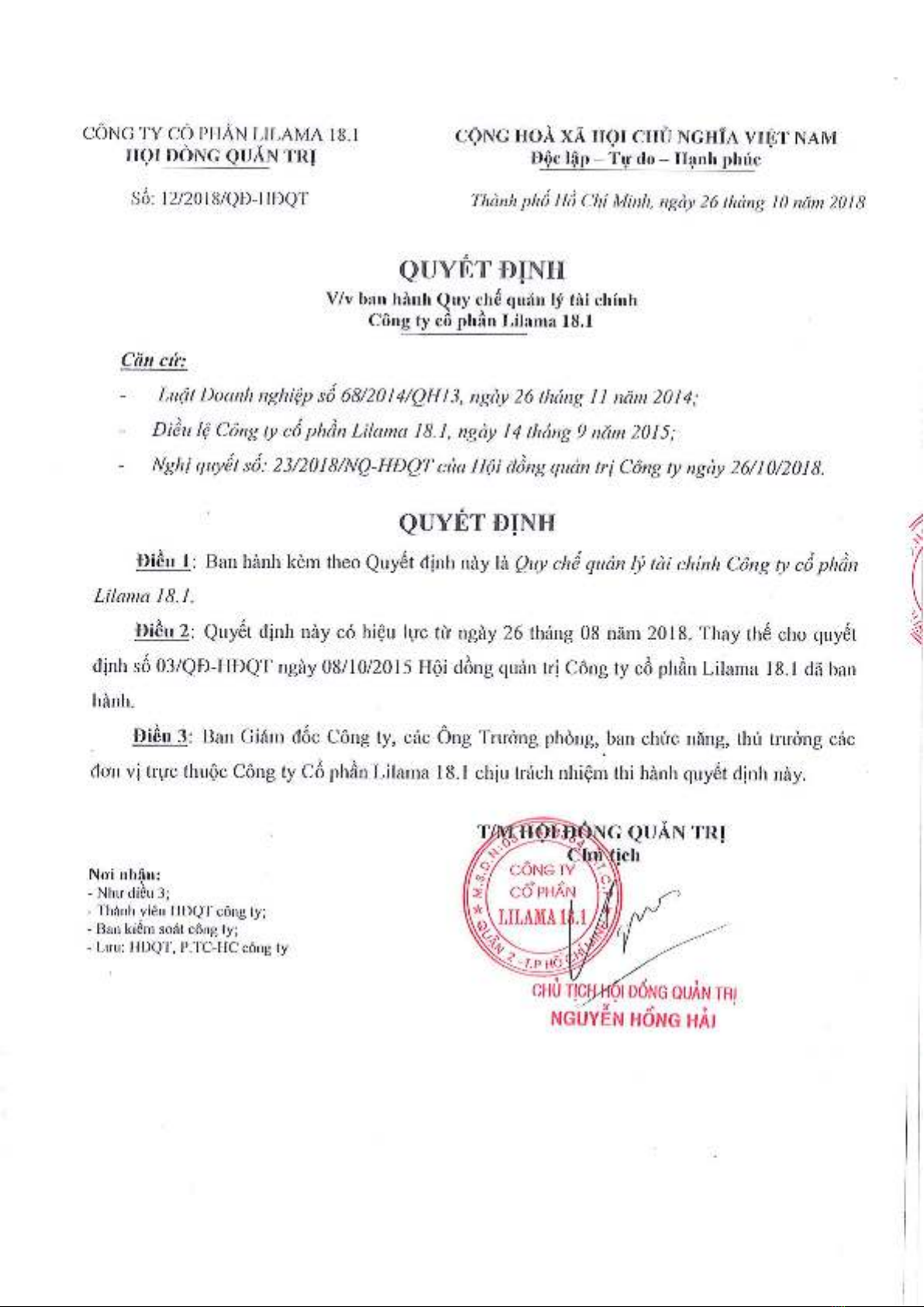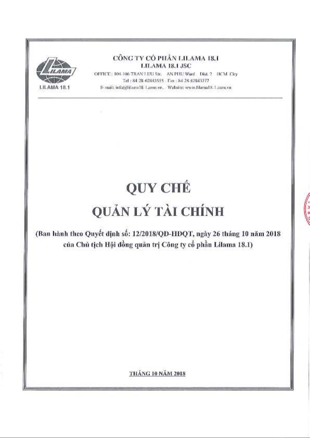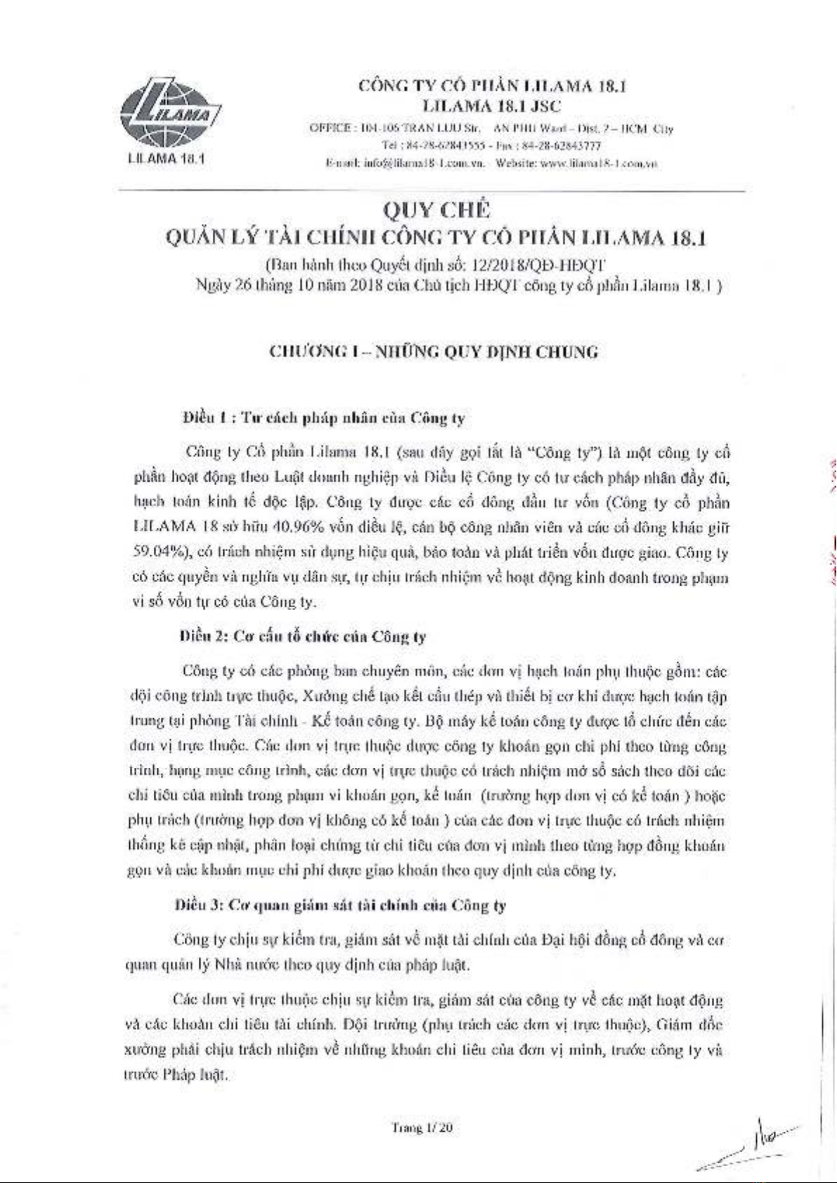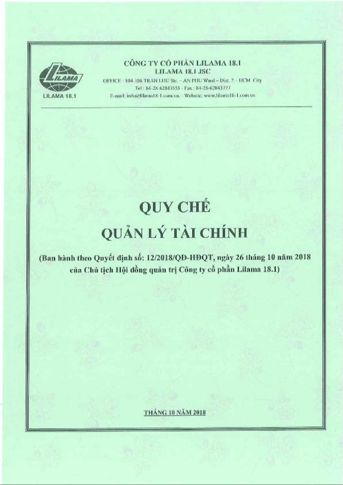 Quy chế quản lý tài chính - Công ty Cổ phần Lilama 18.1