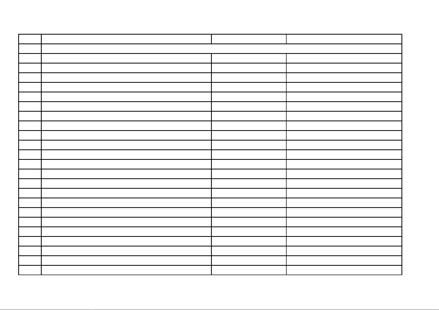 TT Tên thông số Đơn vị tính Ngưỡng giới hạn cho phép