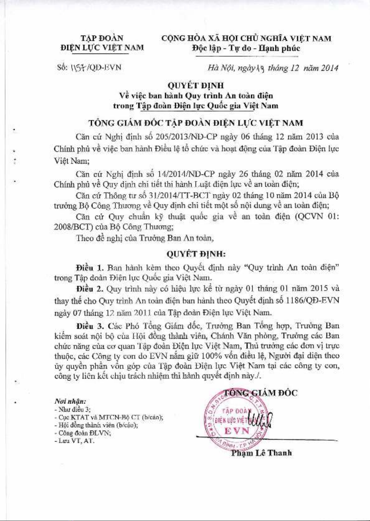 (Ban hanh kern then Quyet dinh SO 1157/QD-EVN ngay 19 tilling 12 nam 2014