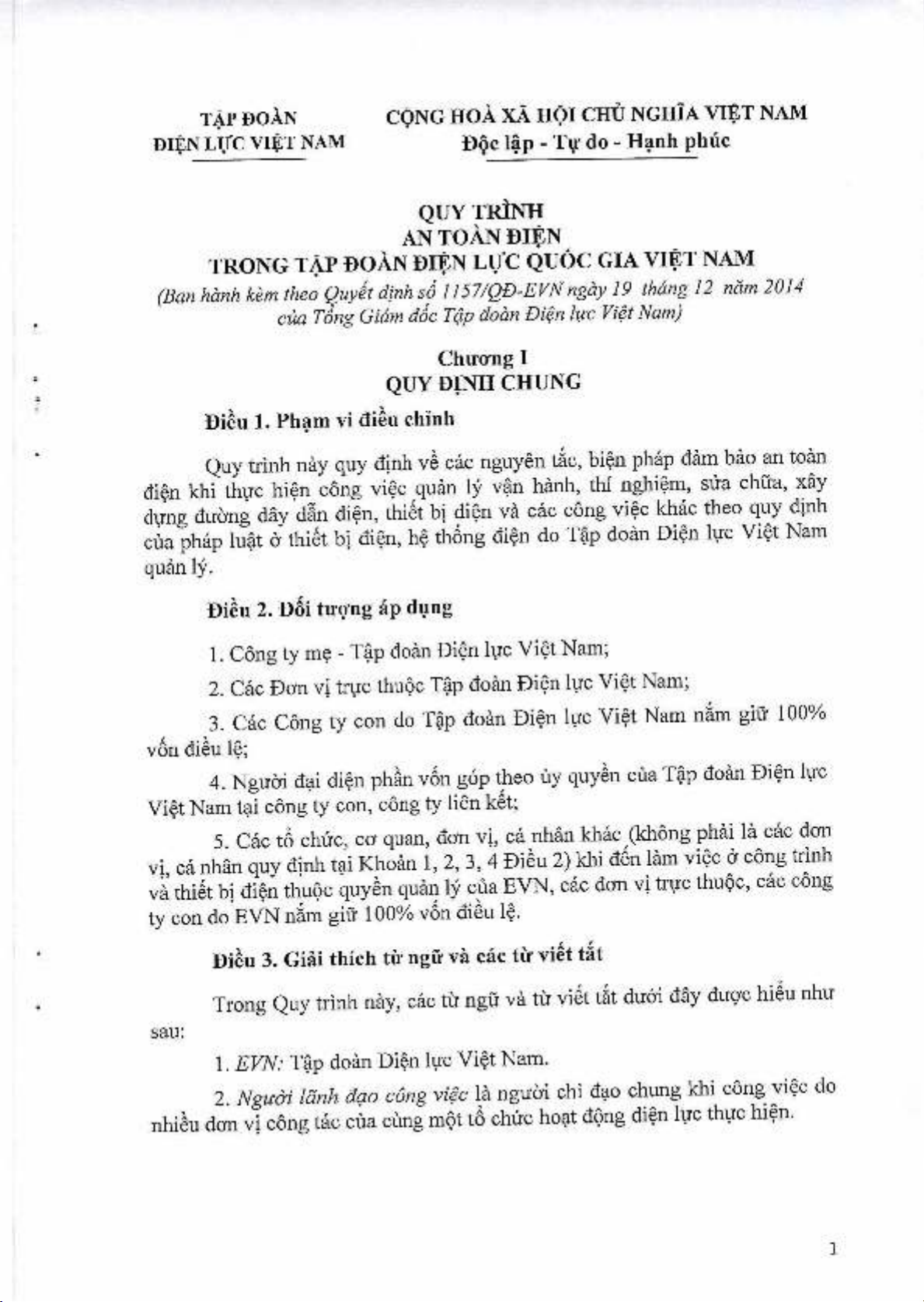 (Ban hanh kern theo Quyit clinh so 1157/QD-EVN ngay 19 thong 12 elm 2014