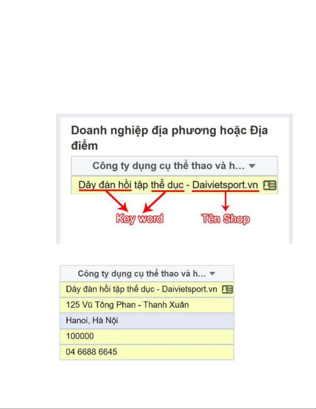 - Tên người dùng (Đường link Page): “Keywords.Tên Shop”