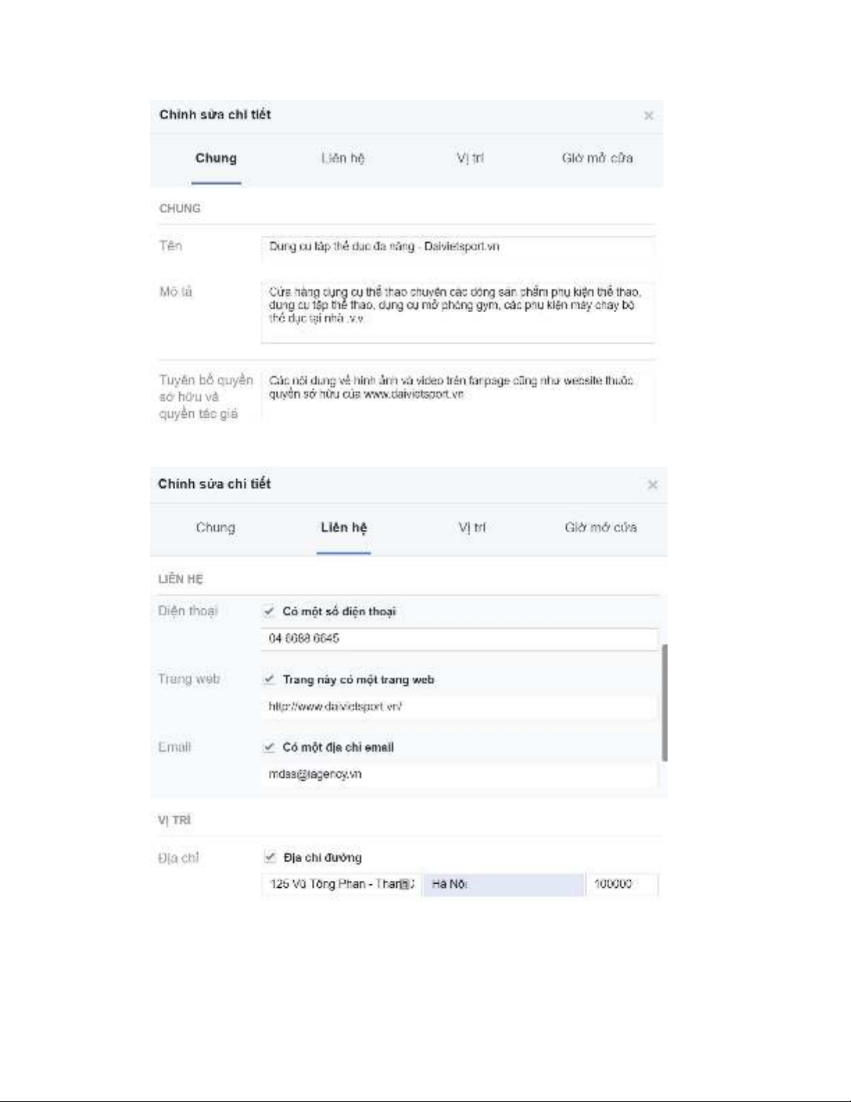 - Thêm đầy đủ thông tin Giới thiệu Page: