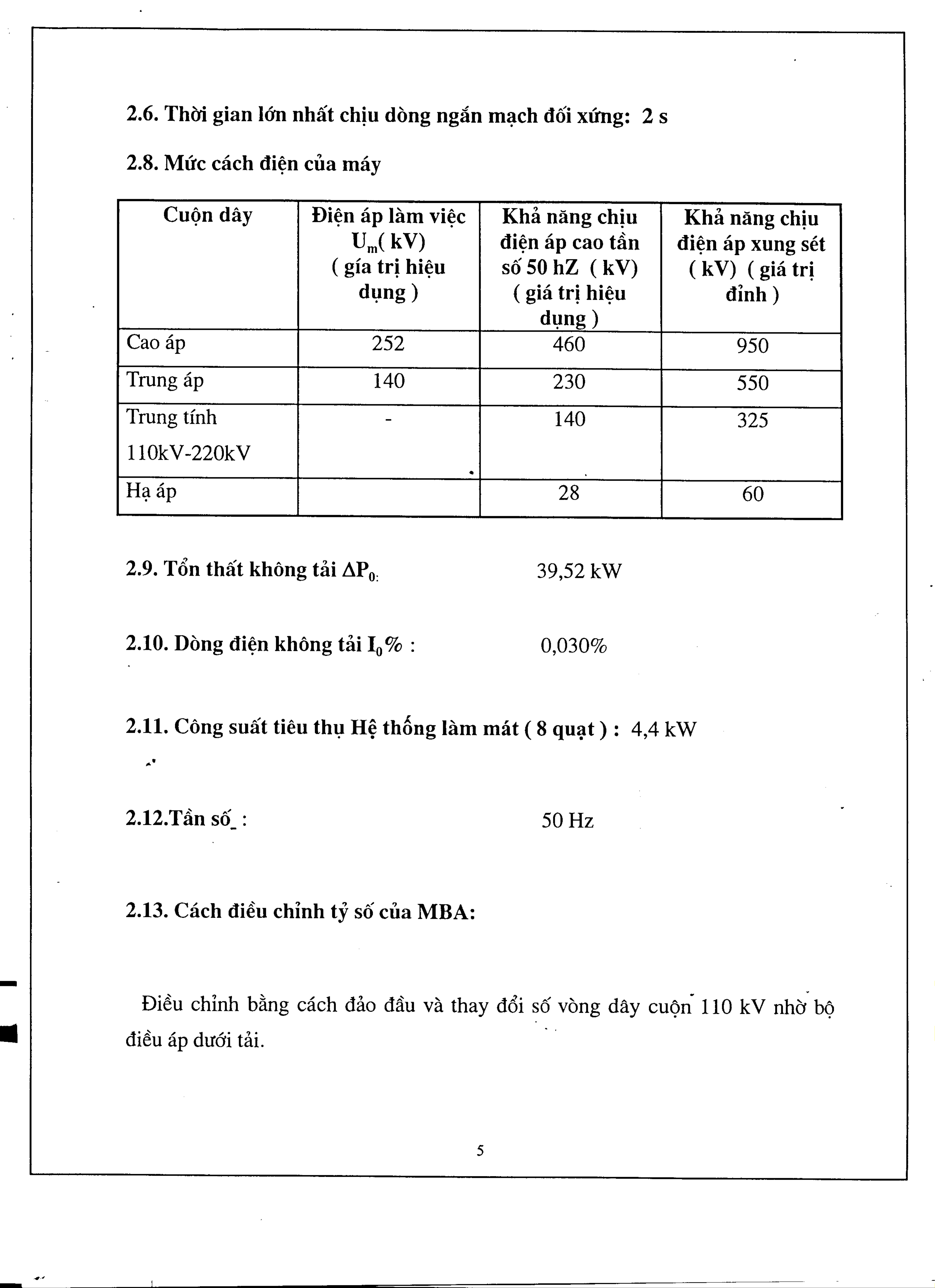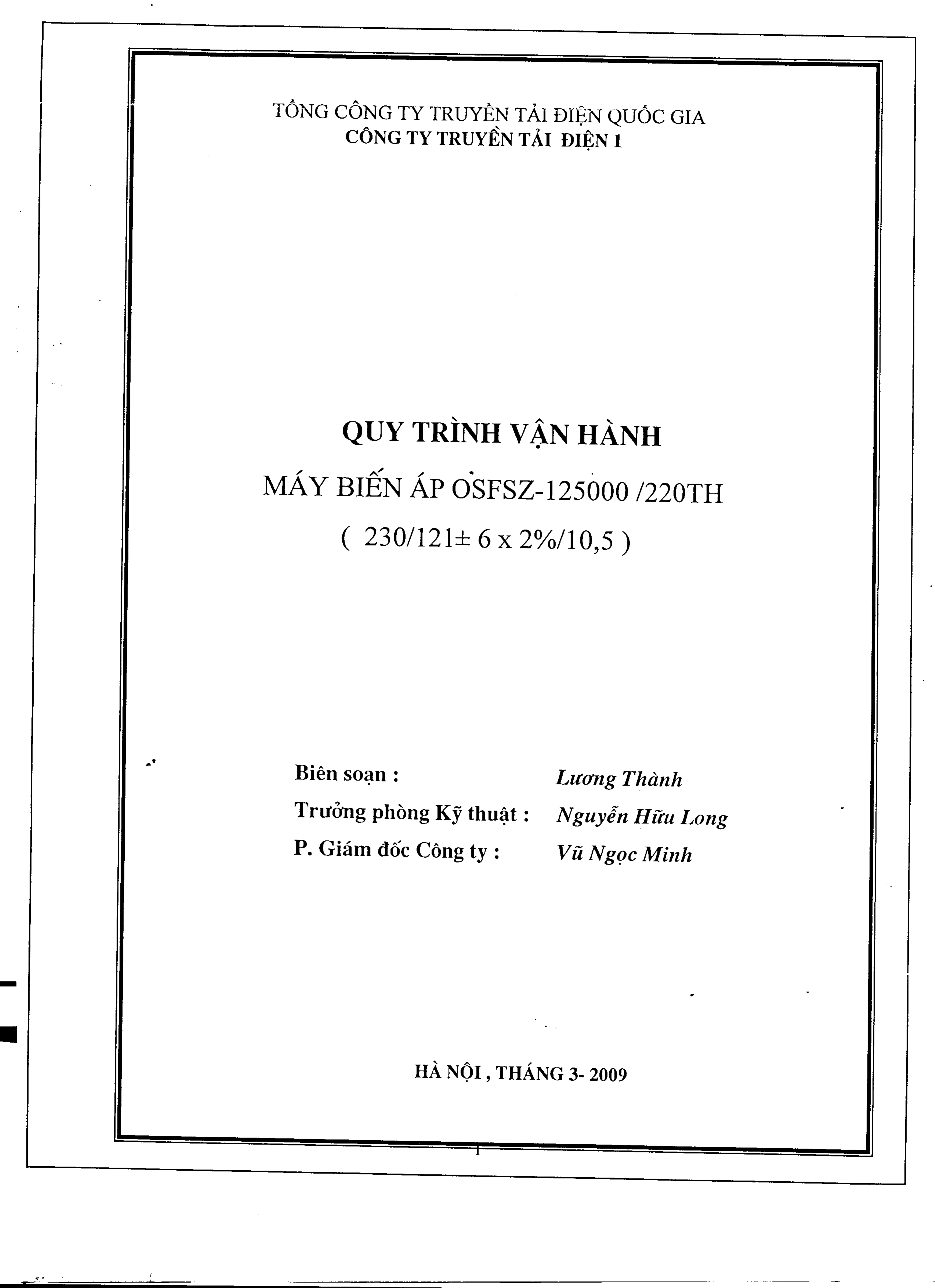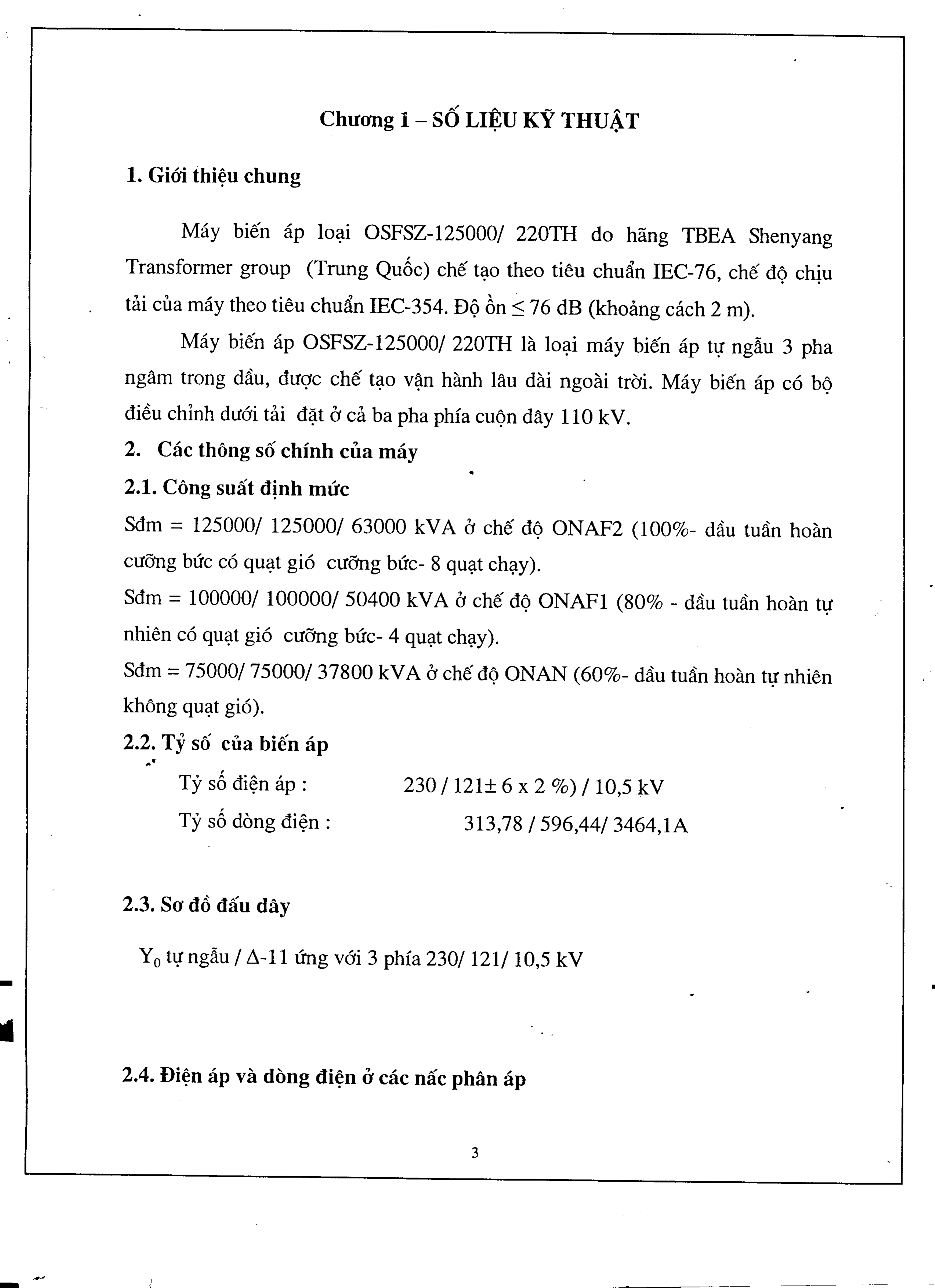 Quy trình vận hành máy biến áp OSFSD-125000/220TH