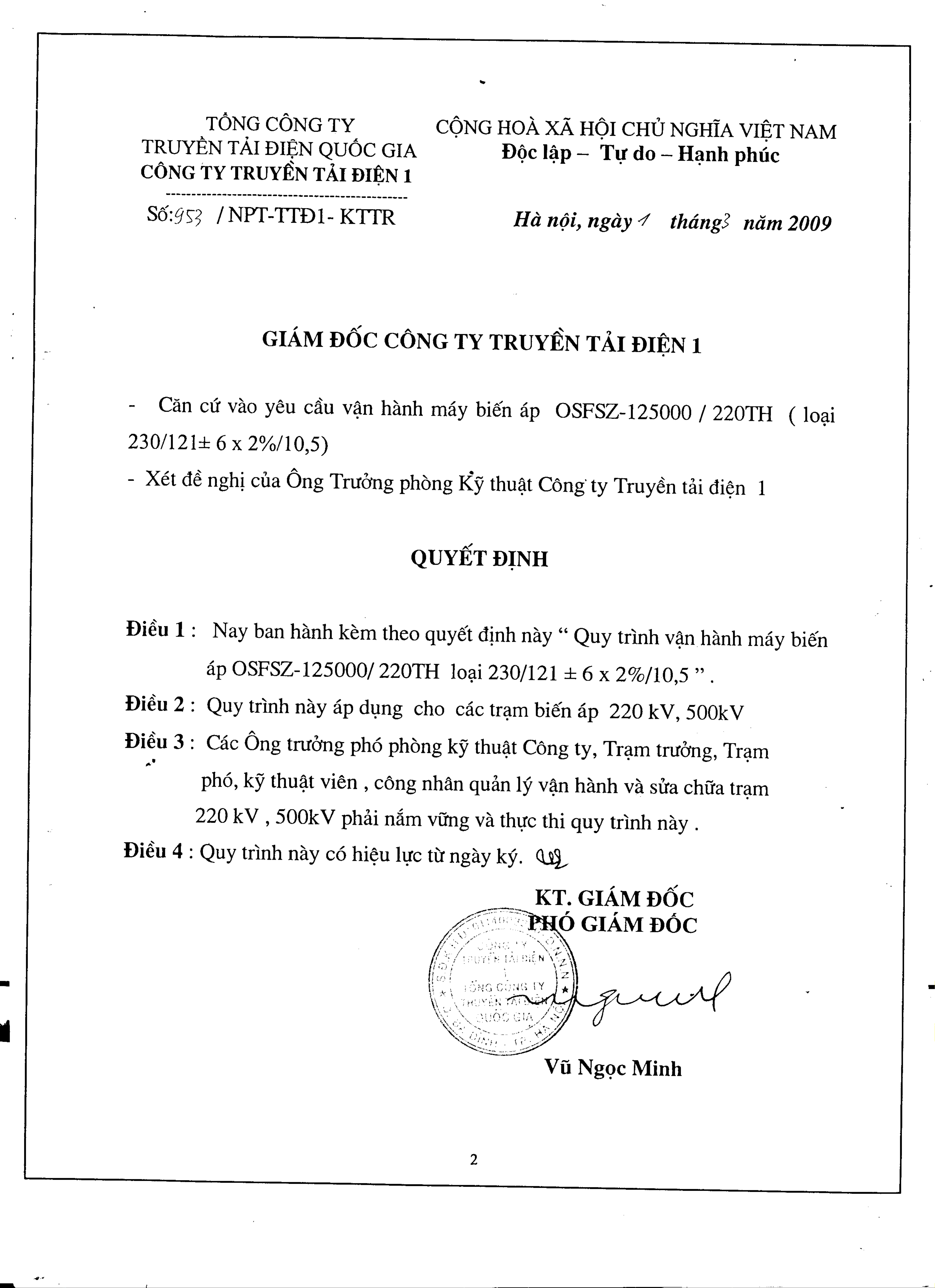 Mời các bạn cùng tham khảo nội dung tài liệu "Quy trình vận hành máy biến áp OSFSD-125000/220TH" dưới đây để nắm bắt được nội dung của Quyết định số 953/NPT-TTĐ1-KTTR. Với các bạn đang học chuyên ngành Điện - Điện tử thì đây là tài liệu tham khảo hữu ích.