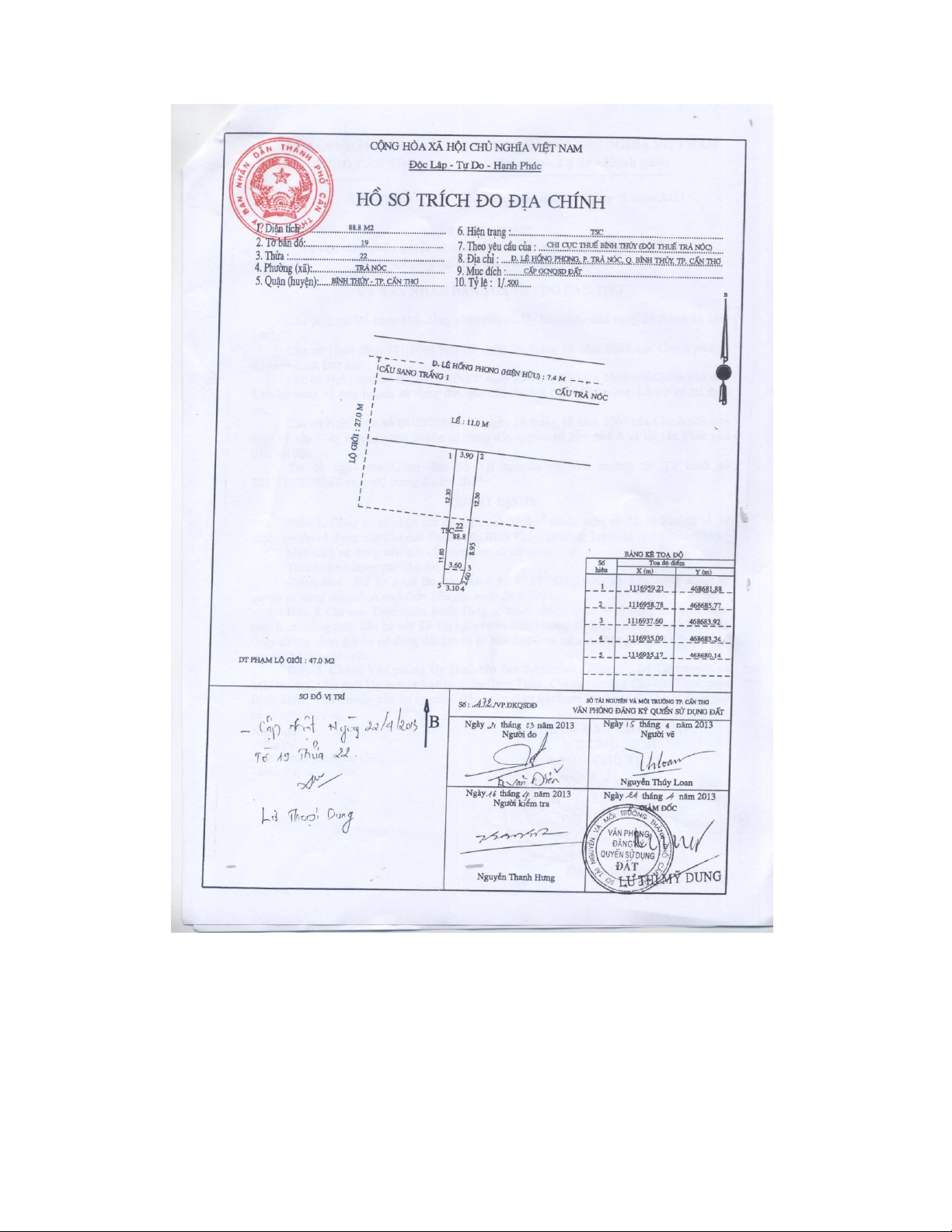 đăng ký quyền sử dụng đất thành phố Cần Thơ lập ngày 24/4/2013).