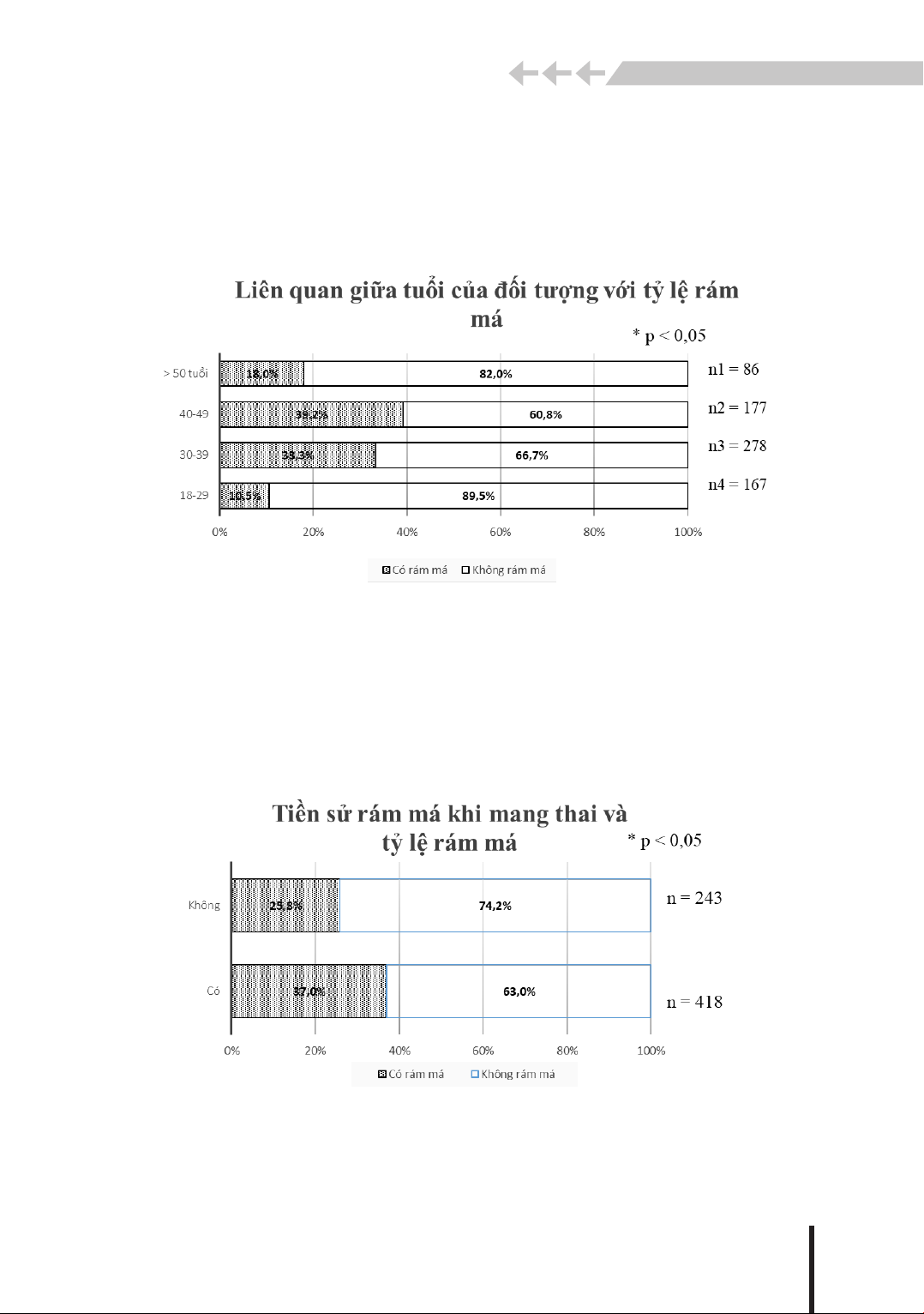 cứu (37,0%), tỷ lệ rám má ở 418 phụ nữ không có tiền sử rám má khi mang thai là 25,8%. Sự khác biệt