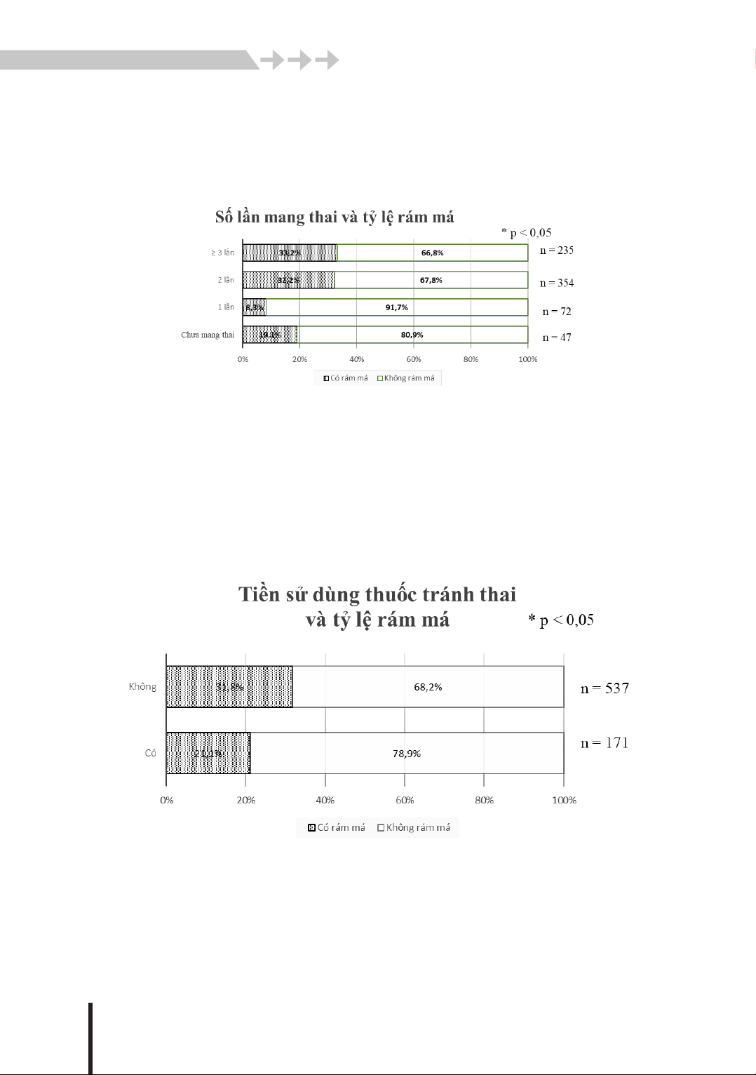 Tỷ lệ rám má ở 171 phụ nữ có tiền sử dùng thuốc tránh thai là 21,1%. Tỷ lệ rám má ở nhóm 537