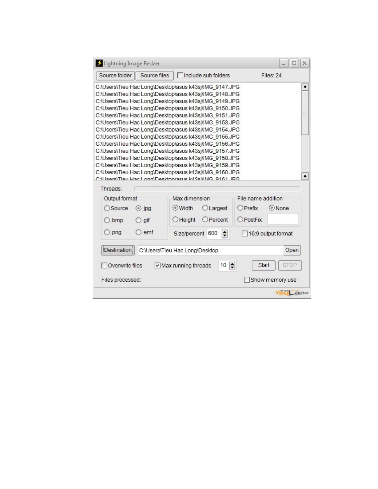 • Max running threads: Tùy chỉnh tốc độ resize.
