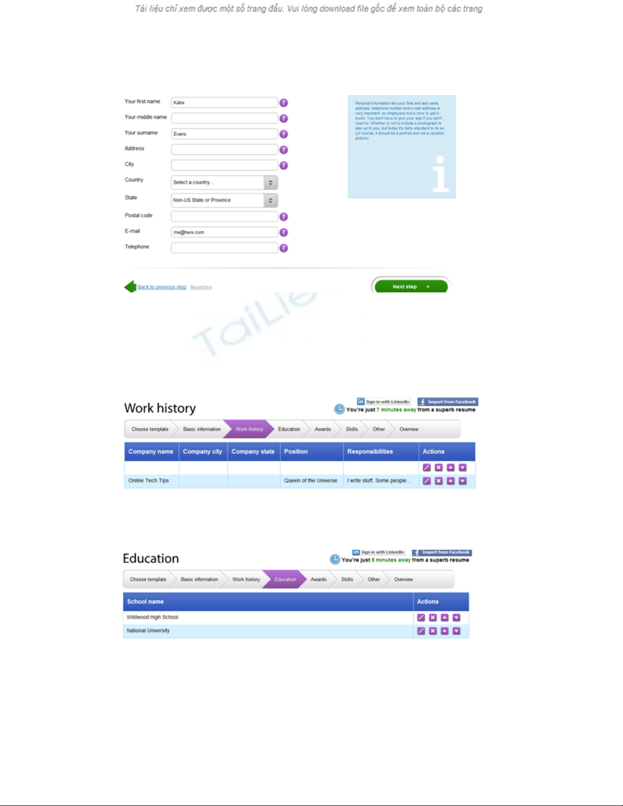 Bây giờ bạn bắt đầu nhập thông tin cho CV. Cách nhanh nhất để làm điều này