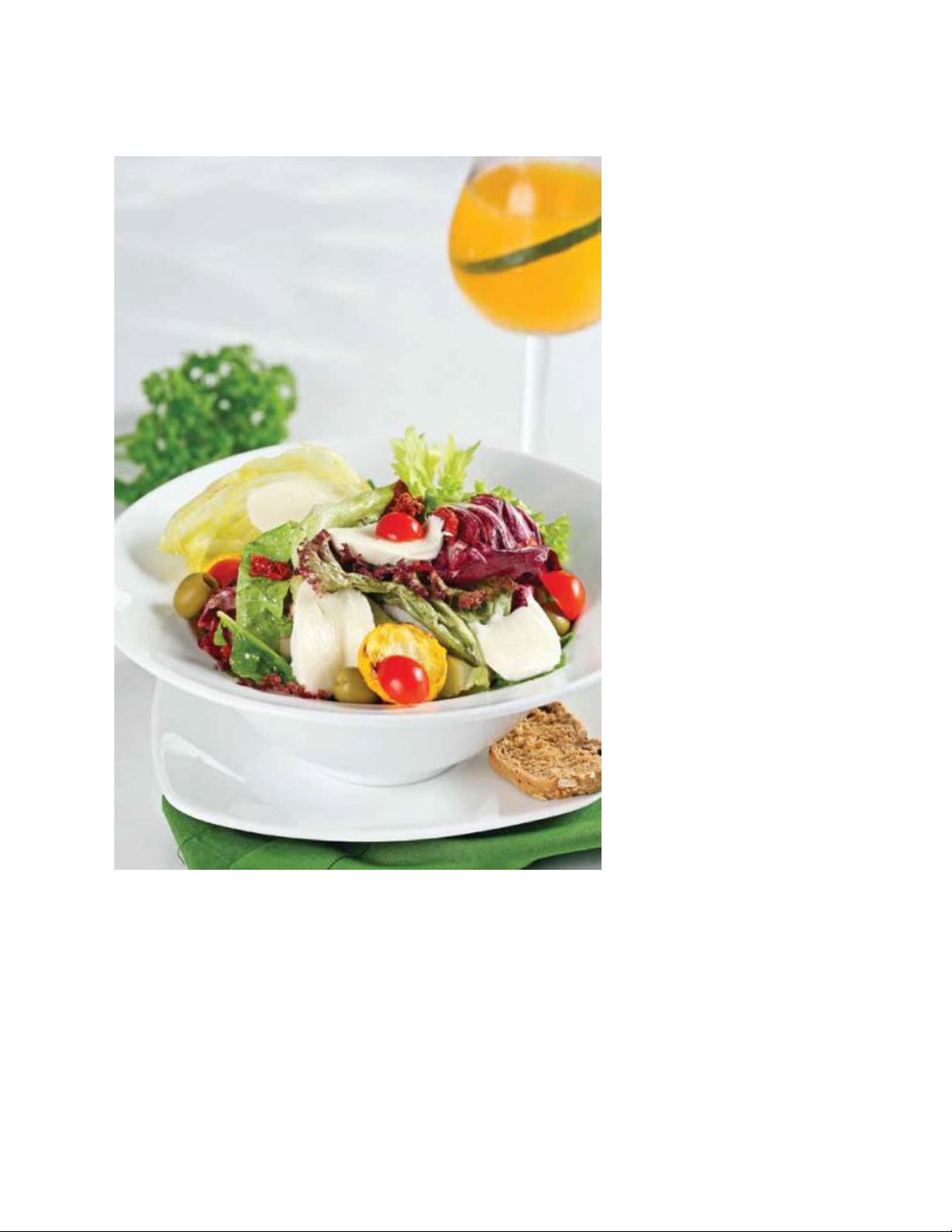 Cho xà lách các loại, cà chua bi, quế tây, quả ô-liu, dầu ô-liu, nước cốt chanh, muối, tiêu xay