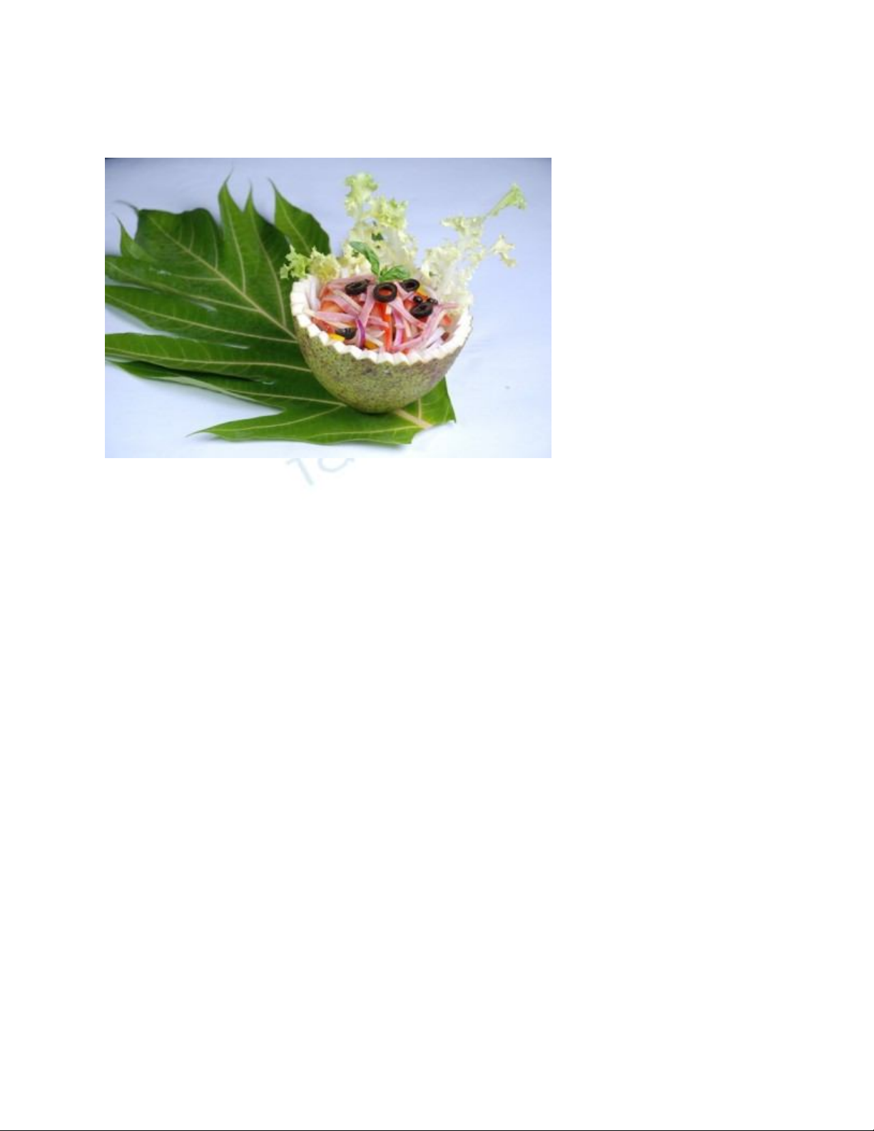 cả xắt sợi. Trái ô-liu cắt từng khoanh mỏng.