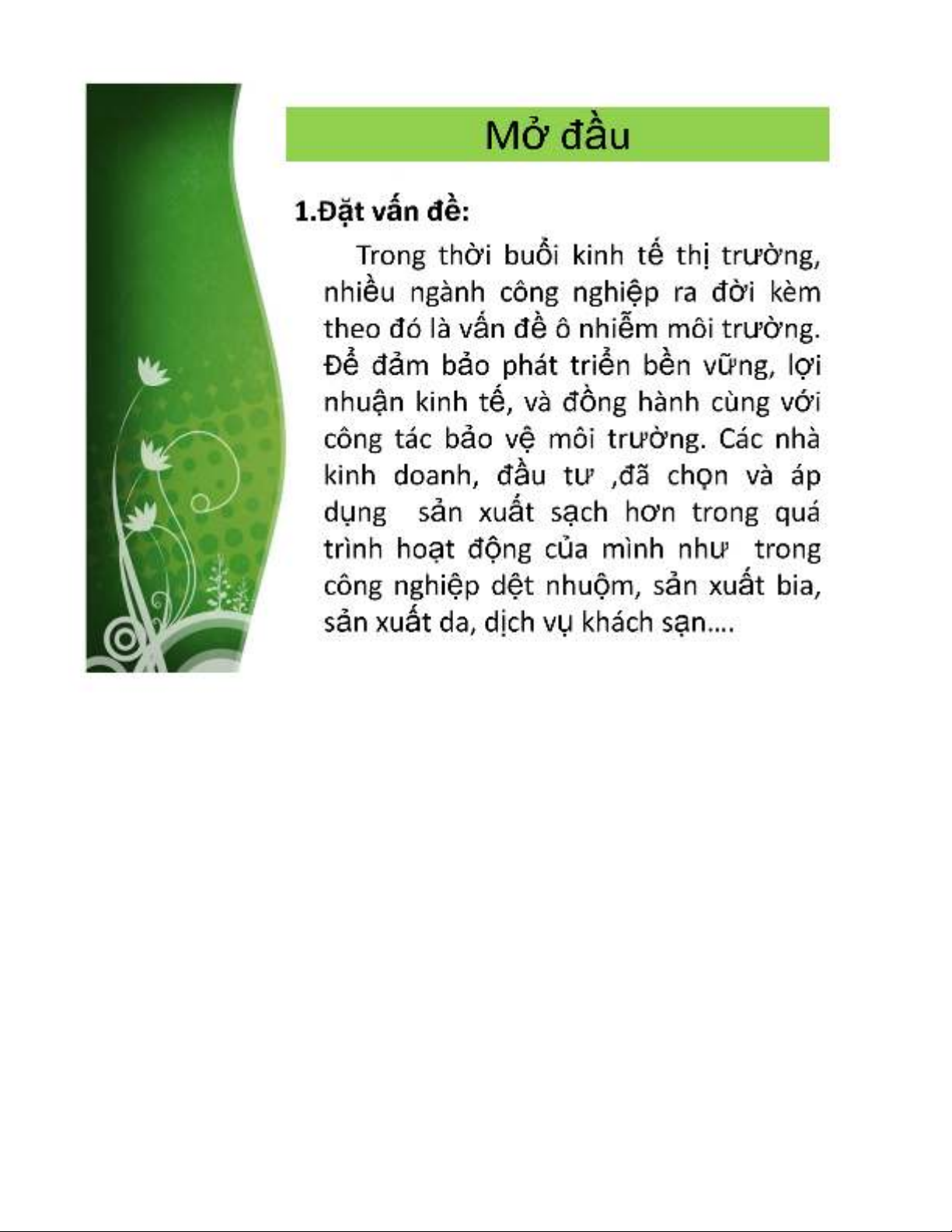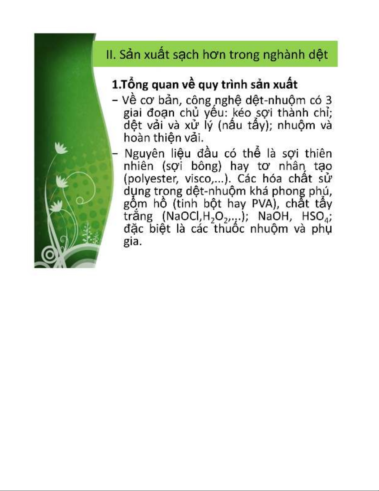 Đề tài: Tìm hiểu về sản xuất sạch hơn trong công nghiệp dệt