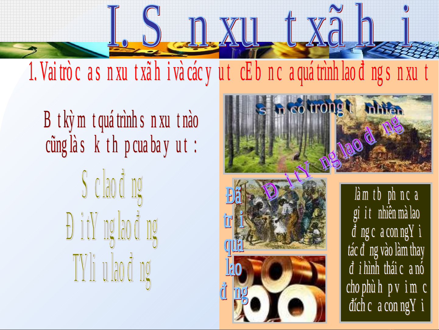 Sản xuất của cải vật chất là cơ sở của đời sống xã hội loài người và là hoạt động cơ bản nhất trong tất cả các hoạt động của con người.