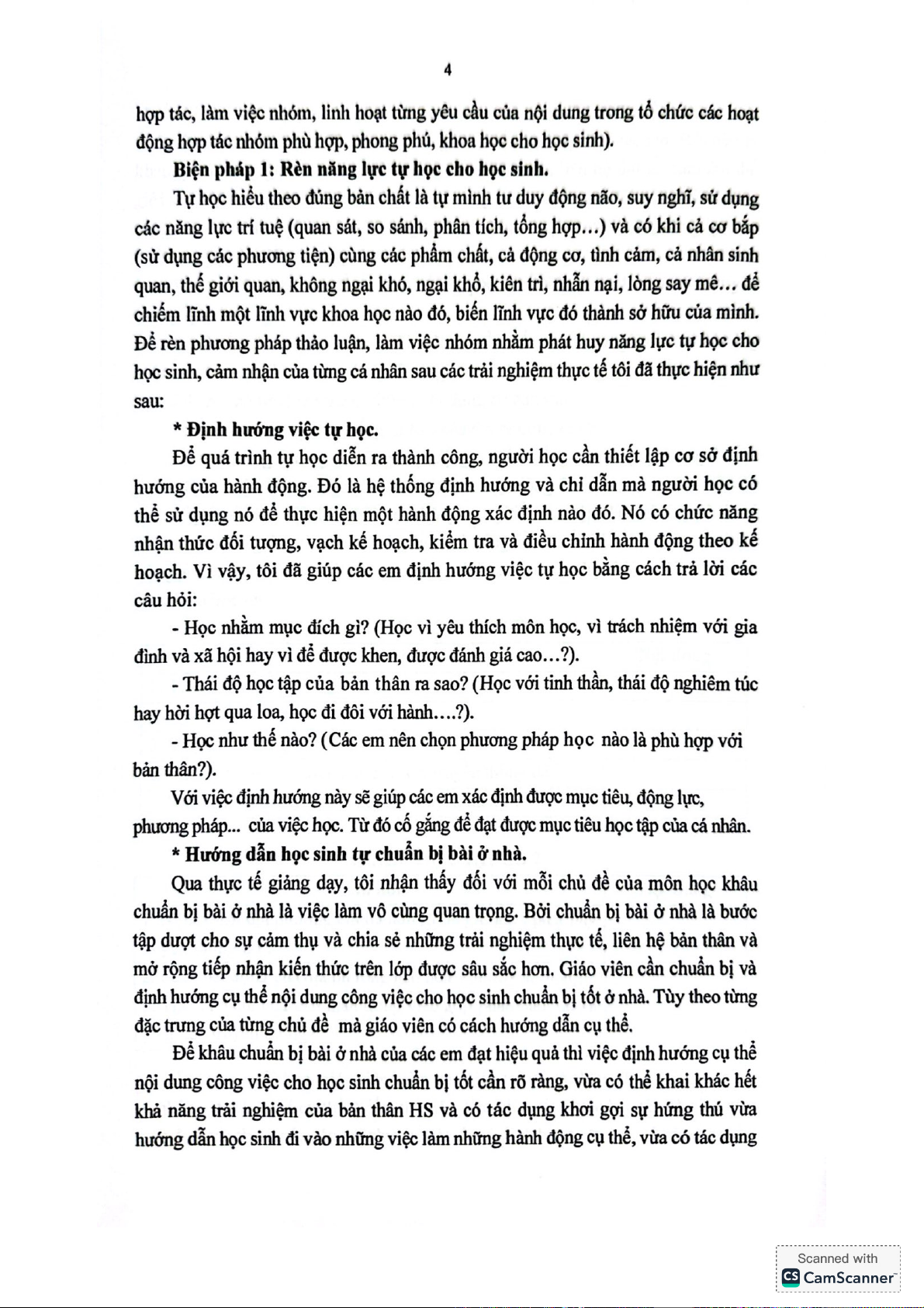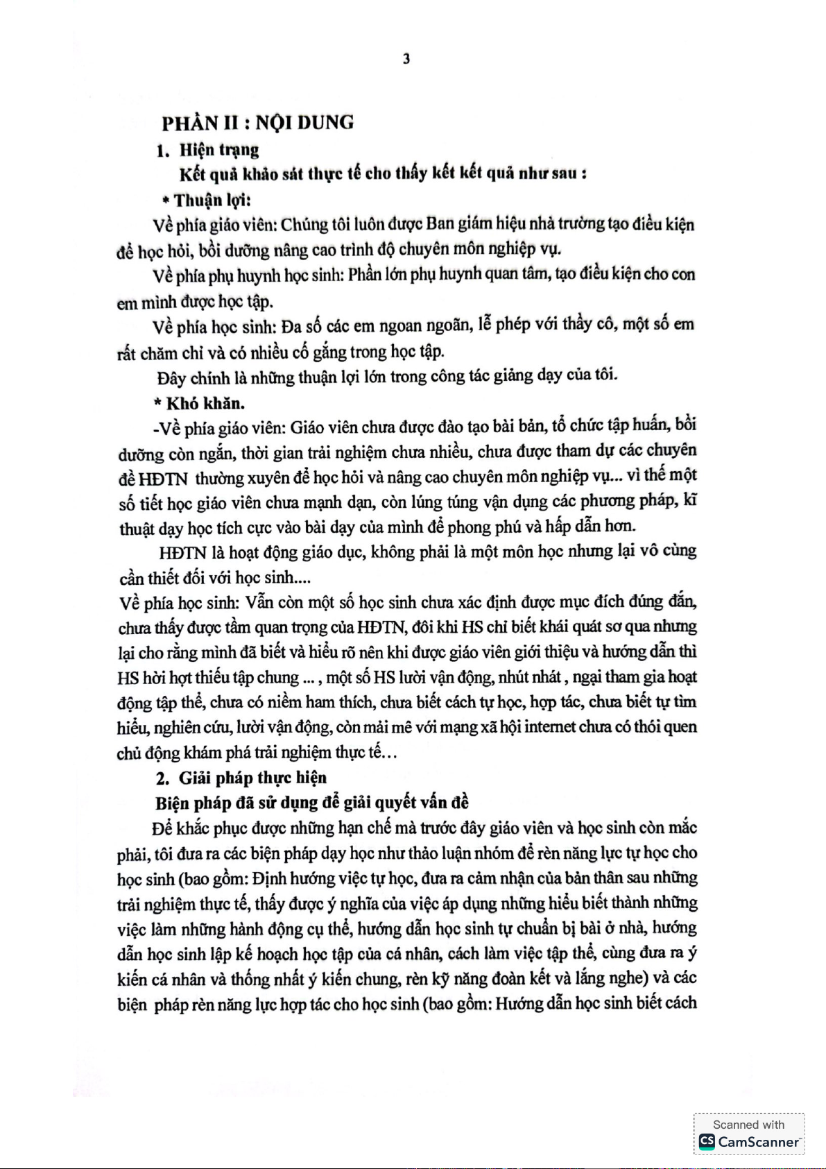 Sáng kiến kinh nghiệm này trình bày một cách tiếp cận toàn diện nhằm giải quyết những thách thức hiện tại trong việc triển khai Hoạt động trải nghiệm (HĐTN) cho học sinh Trung học cơ sở, đặc biệt trong bối cảnh chương trình giáo dục phổ thông 2018 nhấn mạnh phát triển phẩm chất và năng lực. Mở đầu, tài liệu chỉ ra thực trạng còn hạn chế về kinh nghiệm giáo viên và sự thiếu chủ động của học sinh, dẫn đến hiệu quả HĐTN chưa cao. Để khắc phục, tác giả đề xuất hai nhóm giải pháp trọng tâm: rèn luyện năng lực tự học và năng lực hợp tác cho học sinh. Trong nhóm giải pháp về năng lực tự học, bản thảo tập trung vào việc định hướng mục tiêu, phương pháp học tập cá nhân, hướng dẫn chuẩn bị bài ở nhà thông qua phiếu học tập, giúp học sinh chủ động khám phá kiến thức và rèn luyện kỹ năng tư duy phản biện. Ví dụ cụ thể về chủ đề "Tự hào truyền thống quê hương" minh họa cách thức giáo viên gợi mở sự tò mò và khuyến khích học sinh tìm hiểu. Đối với năng lực hợp tác, sáng kiến nhấn mạnh tầm quan trọng của làm việc nhóm hiệu quả, hướng dẫn học sinh cách thức tham gia và đóng góp ý kiến, phát triển kỹ năng giao tiếp và chia sẻ. Các giải pháp này không chỉ giúp học sinh vượt qua sự thụ động, nâng cao ý thức tự giác mà còn bồi dưỡng kỹ năng cần thiết cho cuộc sống và học tập. Giá trị ứng dụng của sáng kiến nằm ở khả năng chuyển đổi HĐTN thành những trải nghiệm có ý nghĩa, góp phần vào sự phát triển toàn diện, làm giàu thêm tình yêu quê hương đất nước và phát huy tối đa tiềm năng của mỗi cá nhân học sinh.