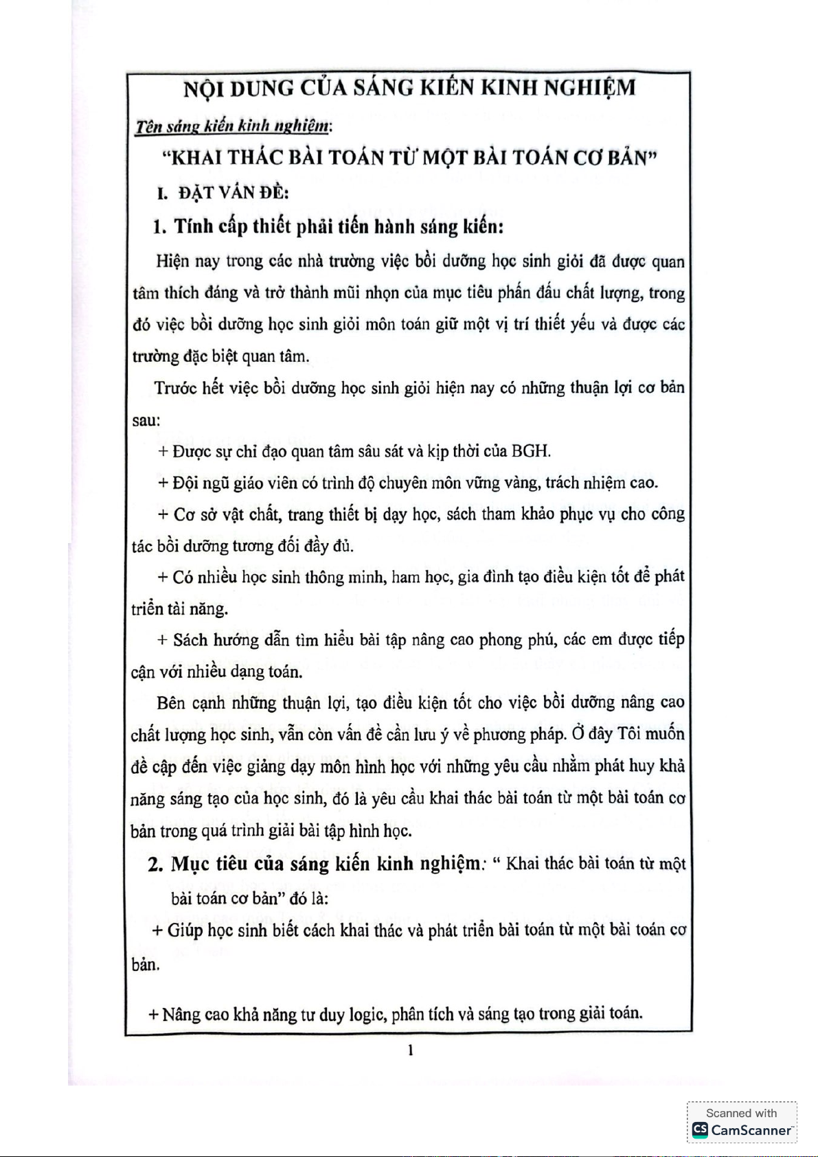 Trong bối cảnh giáo dục hiện nay, việc bồi dưỡng học sinh giỏi, đặc biệt trong môn Toán, đóng vai trò then chốt nhằm nâng cao chất lượng toàn diện. Sáng kiến kinh nghiệm này tập trung vào một phương pháp giảng dạy hiệu quả, đó là "khai thác bài toán từ một bài toán cơ bản" trong hình học. Mục tiêu là phát triển tư duy logic, khả năng phân tích và sáng tạo của học sinh. Bằng cách hướng dẫn học sinh không chỉ giải toán mà còn đào sâu, mở rộng vấn đề, sáng kiến này nhằm trang bị cho các em nền tảng vững chắc để tiếp cận các bài toán phức tạp hơn, đồng thời ứng dụng kiến thức linh hoạt trong thực tiễn.